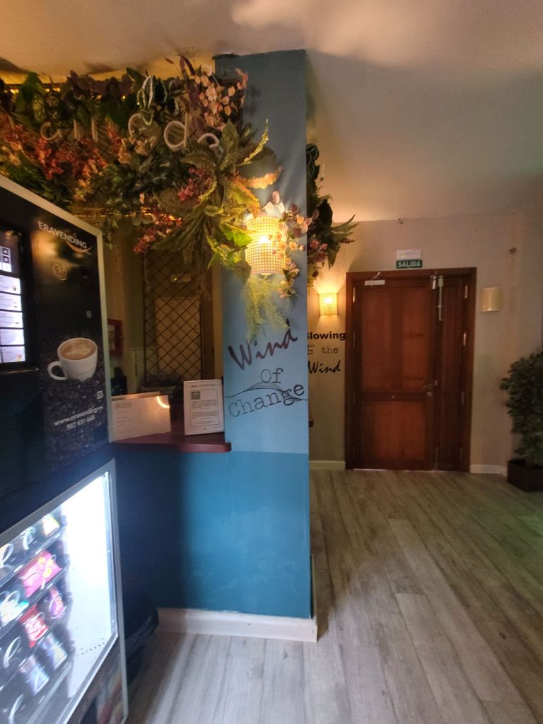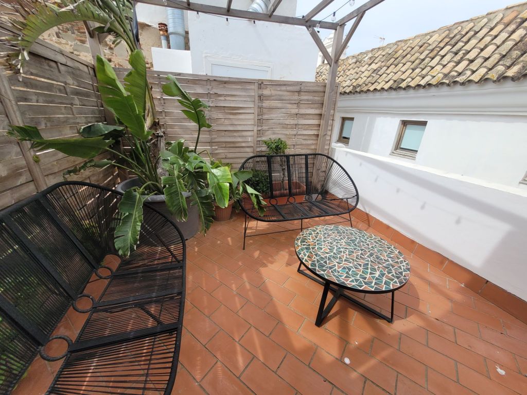 Tog buss från Torre Del Mar till Malaga, 1,5 timme och sedan 2,5 timme till Tarifa. Bokat på Hostal Alameda Boutique. Häftigt ställe i en gammal byggnad. Har en terass och utsikt mot gränderna i Gamla stan.