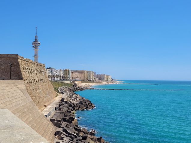 Tog ca 2 timmar med bussen till Cadiz. Fick en go känsla direkt. Kanske har det med att solen skiner från en klarblå himmel. Efter 2 dagar i Tarifa med blåst, regn och kyla är förväntningarna inte så höga. Tyvärr är det bara en natt här och jag har ju redan köpt biljetter till Portugal, men jag vill definitivt återvända hit. Hotellet Dormus ligger bra till. Nära färjor, buss och tåg. Relativt nytt, fräscht. Plus bra pris. Har varit och gått längs strandpromenaden som aldrig tar slut. Havet, havet, havet. Så fina byggnader här. Väl bevarade och en del är i Art Deco stil. Läckra.