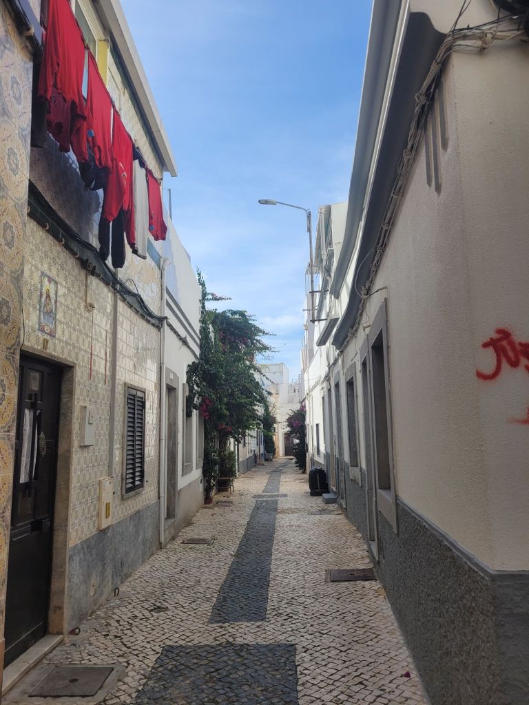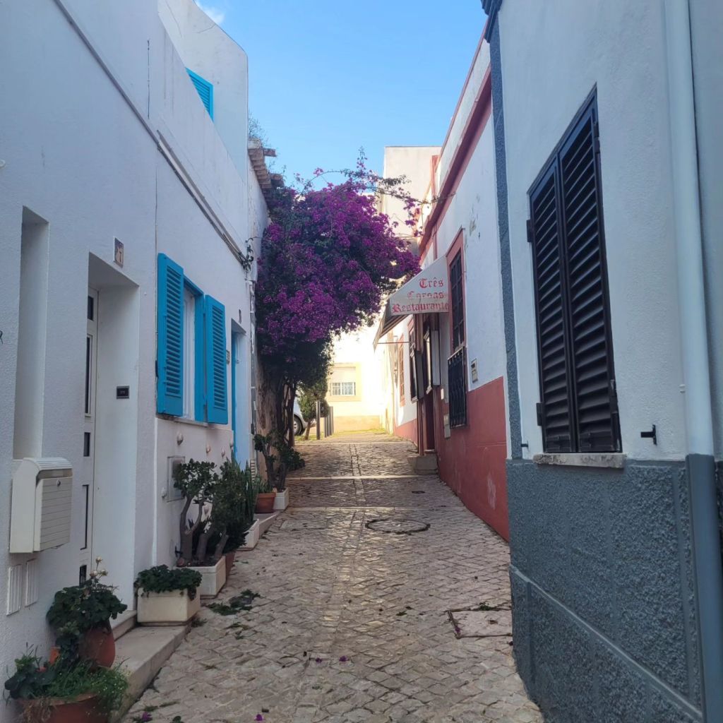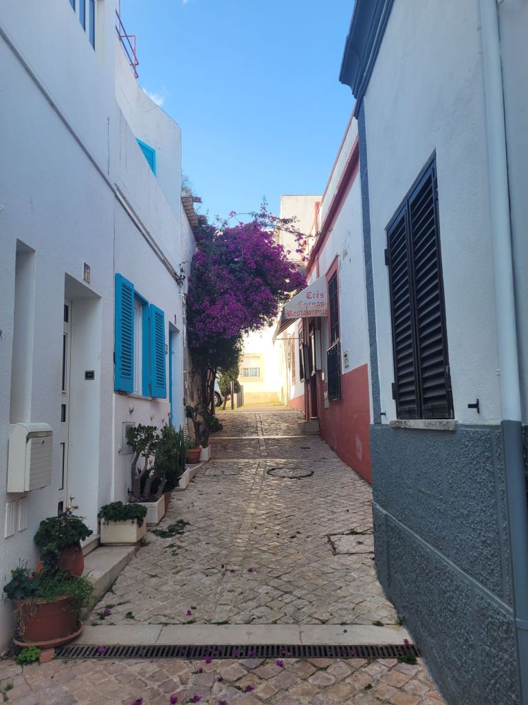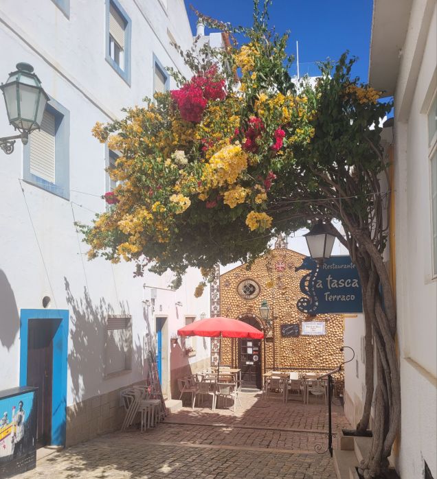 Trots det gillar jag den här delen av Albufeira. Man når stranden genom en mur/tunnel. Det är vackert och pittoreskt med smala gränder, vackra blommor. Många mysiga restauranger.