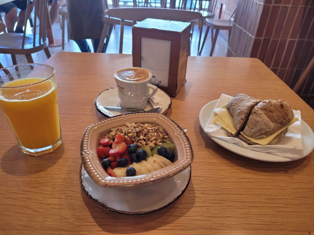 Kände mig som ett överkört tåg. Tog mig ut och det blev en frulle/lunch på en vegansk restaurang. Breakfast bowl och kaffe, mycket kaffe. Vädret är regn av och till. Går och handlar och fyller kyl. Gick längs havet. Äntligen är jag här. Den här platsen har en speciell plats i mitt hjärta. Den är så genuin. Havet, som är så magiskt och helande. Vädret blev stadigt bättre och bättre och det blev dagar på stranden varvat med vandringar. Morgonkaffe på mitt favoritfik, Cafeteria Fajardo. Återvänder alltid dit. Gott kaffe, färskpressad juice, mackor med mera. Trevlig par som har stället.