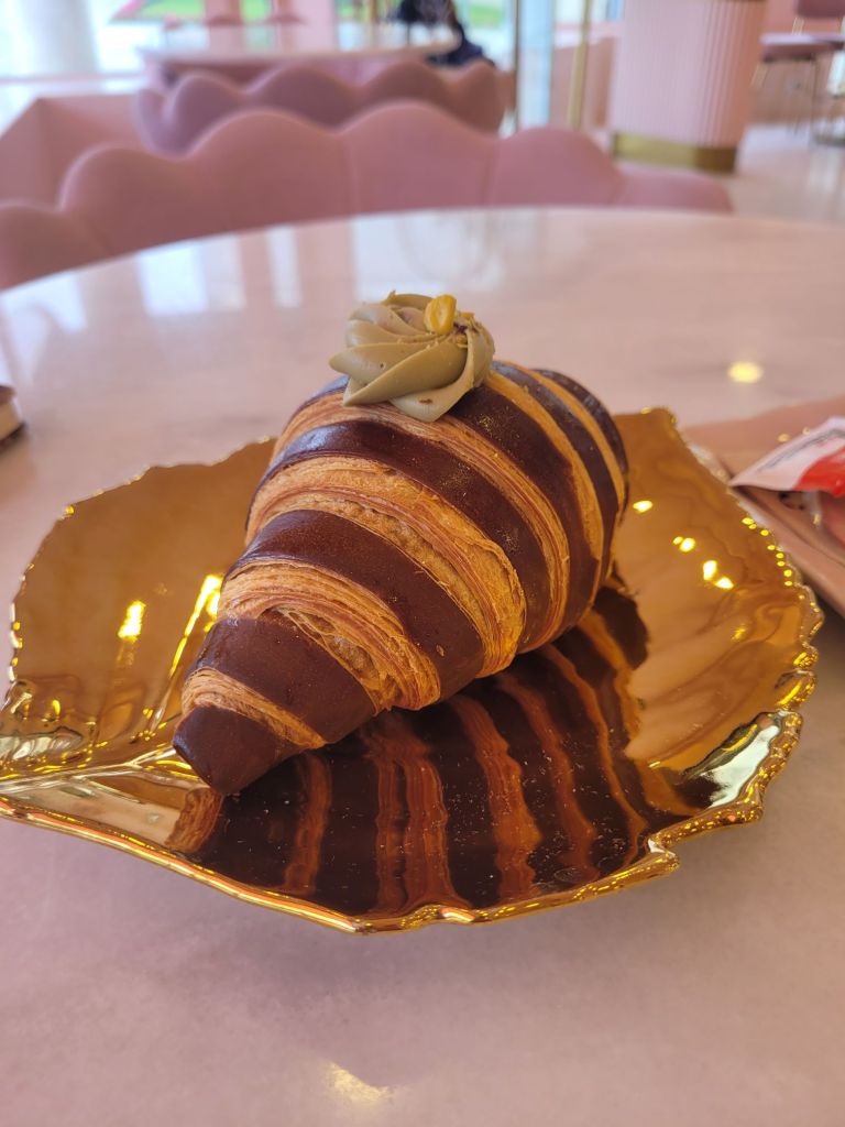 Var bara tvungen att gå in på ett cafe La Vie en Rose. Inrett i rosa och bara killar som jobbar där. Måste bara fika där. De har så mycket att välja på, efter mycket velande tog jag en croissant med pistage. Absolut inte besviken.