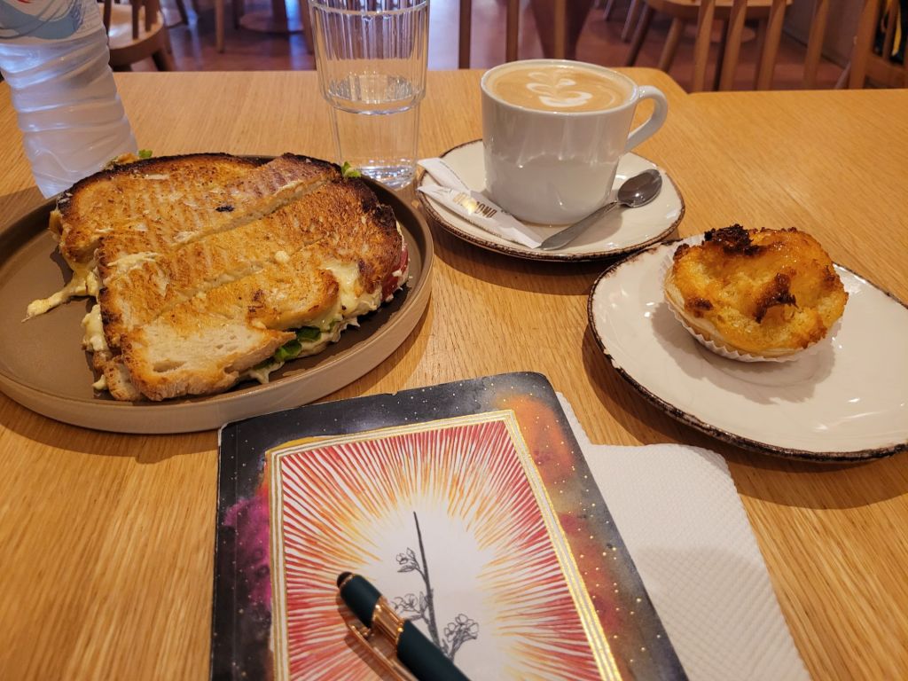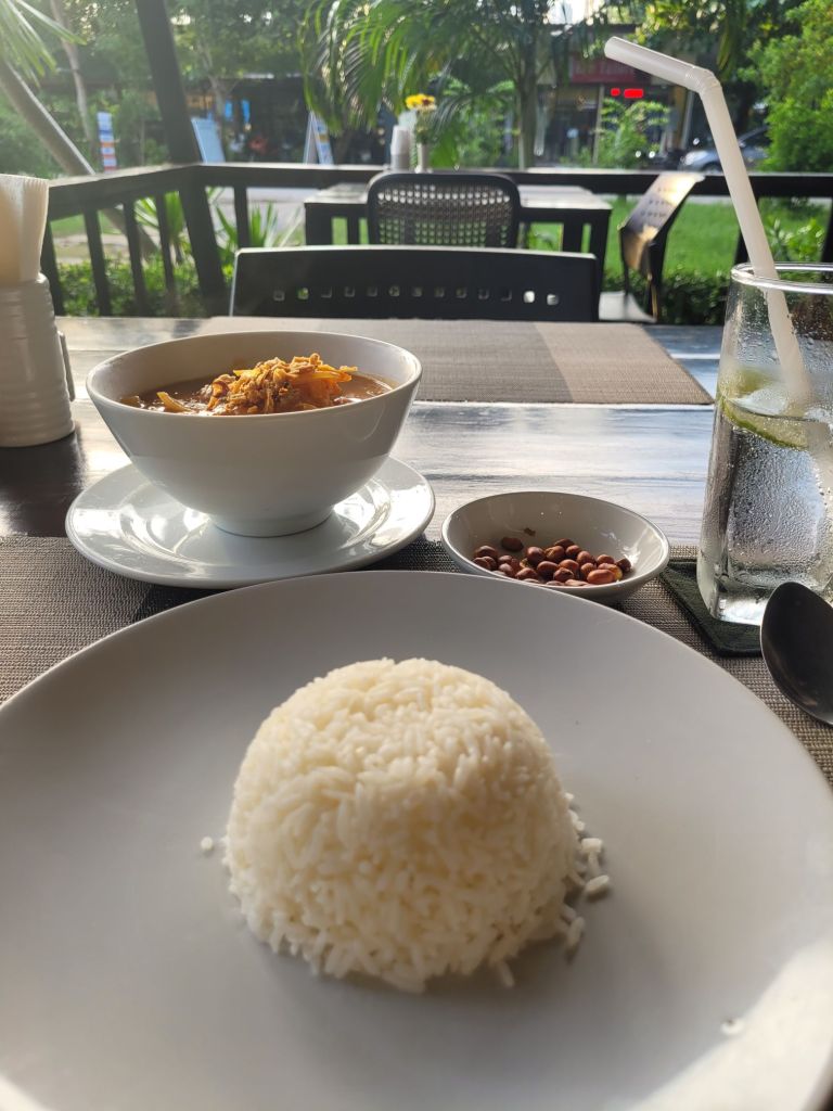 Käkar lunch på Mango Garden, ett nyöppnat ställe, som ligger vid det stora 7 Eleven. Jättefräsch och så mycket att välja på. Trevlig personal. Käkade en god surdegsmacka med scrambled egg och rökt kyckling. Gott kaffe, gjord på kokosmjölk smaksatt med apelsin.