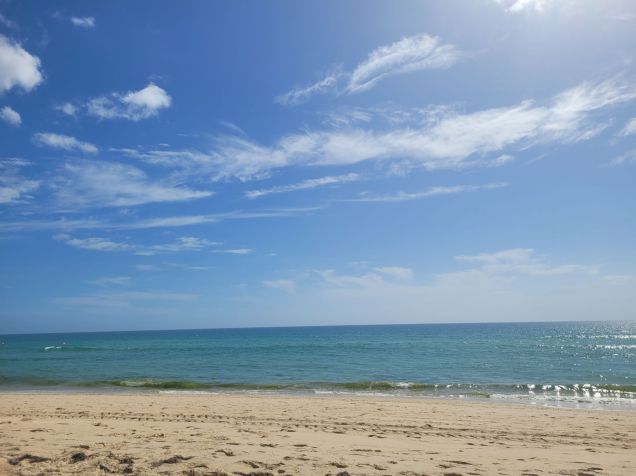 Blev nästan 2 veckor i Monte Gordo. Första gången för mig och jag blev positivt överraskad. Första veckan hyrde jag en liten lägenhet i ett lägenhetshotell. Jag och massor av holländare. Stranden är oändlig och så vacker. Har börjat gilla byn trots många hotell, men tror det är stranden och lägenheten jag hyr som gör att jag trivs så bra. Havsutsikt från 12:e våningen. Jättefin, nyrenoverad i vitt och turkos. Dagarna rullar på. Mix av väder, strandhäng och promenader. Njuter av hav, sol och strand. Lagar den mesta maten, finns så fina råvaror, fräscha grönsaker till bra priser.