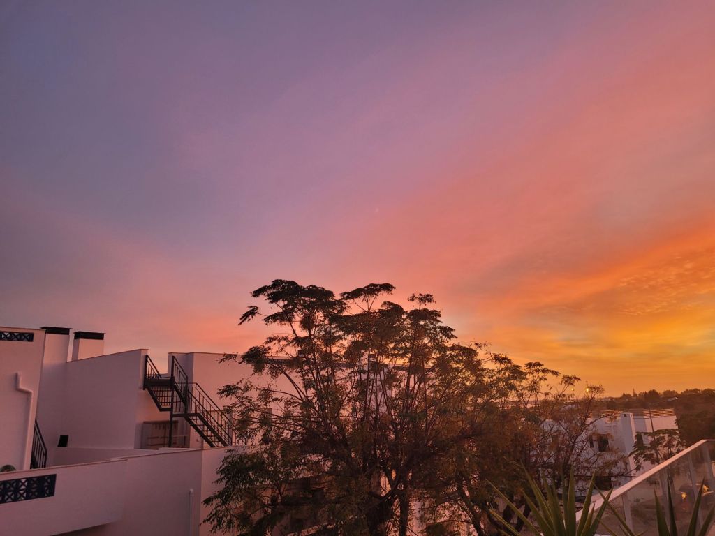 Första kvällen blev det Indiskt, alltid ett säkert kort. Indian Nights. En vacker solnedgång hann jag fånga på en kvällspromenad.