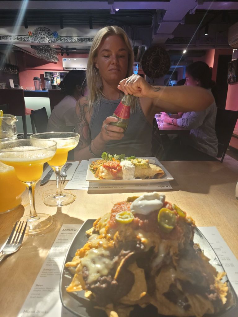 -sorry tjejer i baren, men blanda drinkar kunde ni inte. Sista kvällen slog jag till på en mojito i solnedgången. Ett lager olöst strösocker i botten på glaset. Say no more….