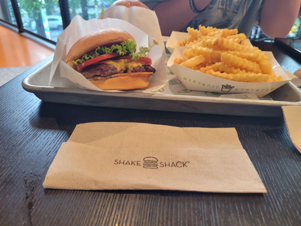 Blev en god burgare och lokal öl på The Cabin Beer Garden.