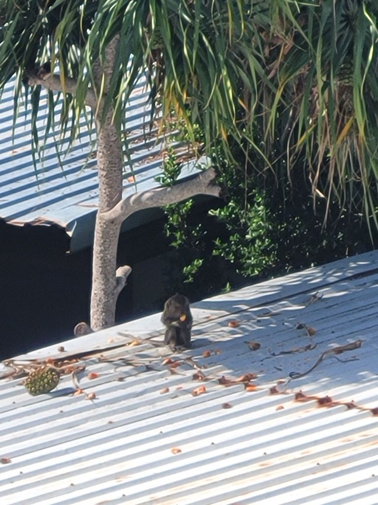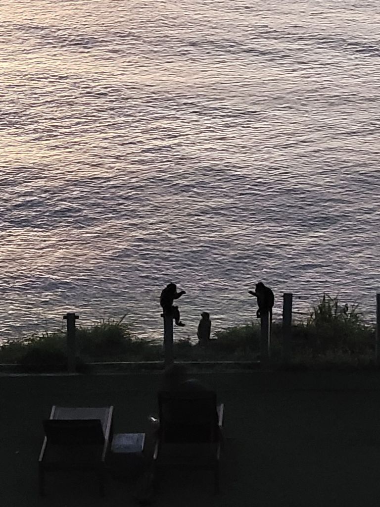 Gott om apor här, som kommer fram i solnedgången och spanar på möjlighet att få sno till sig lite mat.