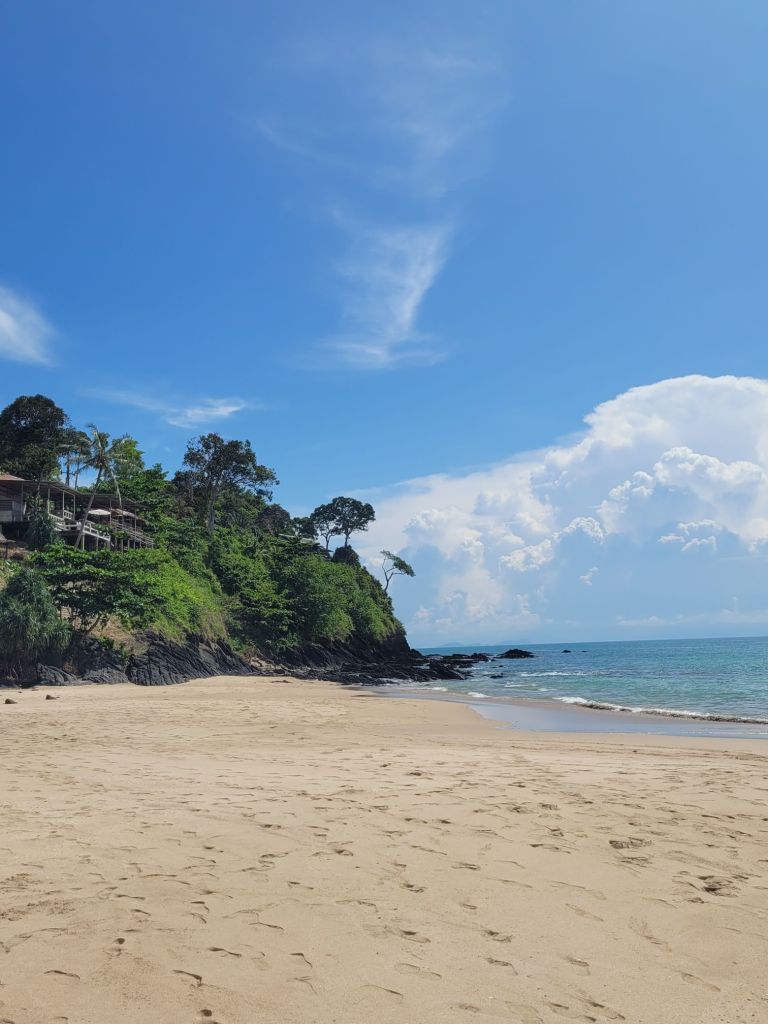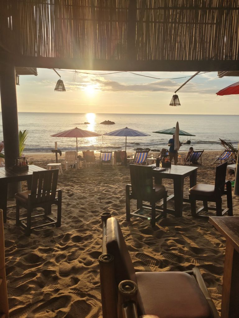 Trevlig litet ställe, med bra mat, trevlig personal. Ligger högt med en trappa ner till stranden. Dock var det lågvatten när jag var där, så det var inte läge att gå ned där. Tro. mig, jag försökte, men fick vända. Gick istället längs vägen och sneakade mig in på en resort, Nirvana Resort. Fick ligga där mot att jag köpte nåt att käka. Bra deal.