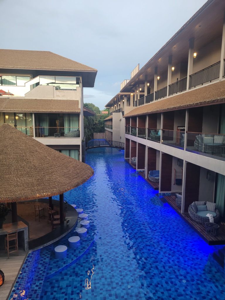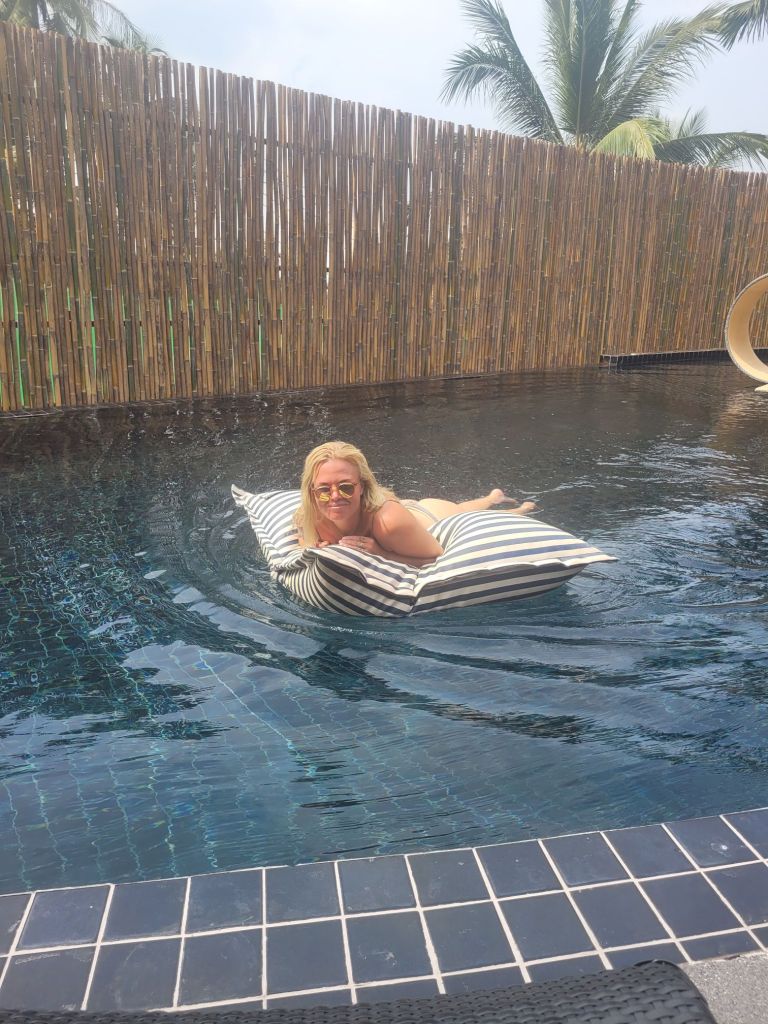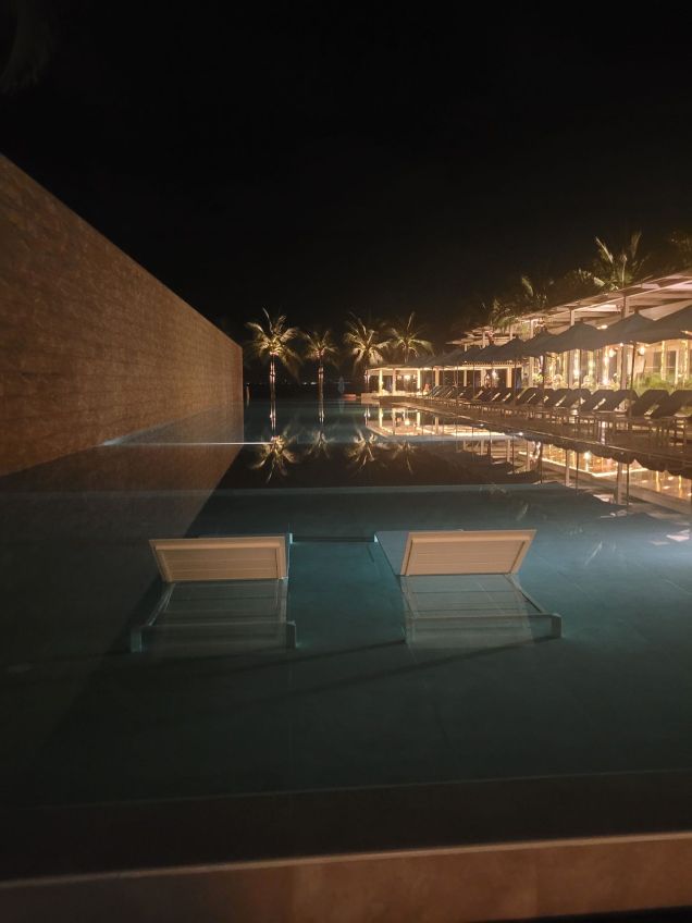 Herregud, detta är inte ett charterhotell. Vägrar att komma in i det moodet. Nåväl, hotellet är ca 1 år. De har även ett hotell på Koh Phangan. Poolen är jättefin. Mycket trevlig personal. Väldigt fint mottagande, fick en drink med kokosrom. Hade rum med havsutsikt, översta våningen. Kunde sitta där när det regnade. För regnade gjorde det. Lite/mycket varje dag. Här var det även fri shuttle till Fisherman. Åkte dit, käkade så god middag på Gusto. Avslutade kvällen med underbar fotmassage.