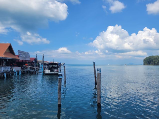 Sitter vid piren, Koh Lanta. Väntar på att speedboaten som ska ta mig till Koh Lipe, är redo av gå. Ny dag och ny ö. Spännande. Saladan Pier är ett nav för båtturer som går och ankommer. Toaletterna är inte de fräschaste.