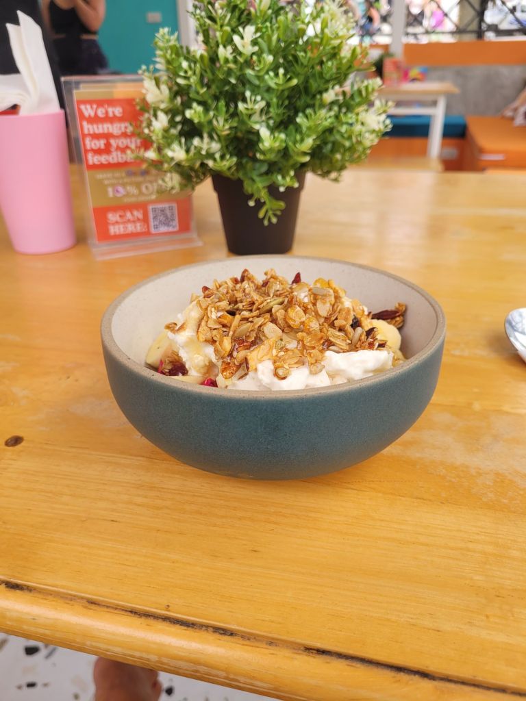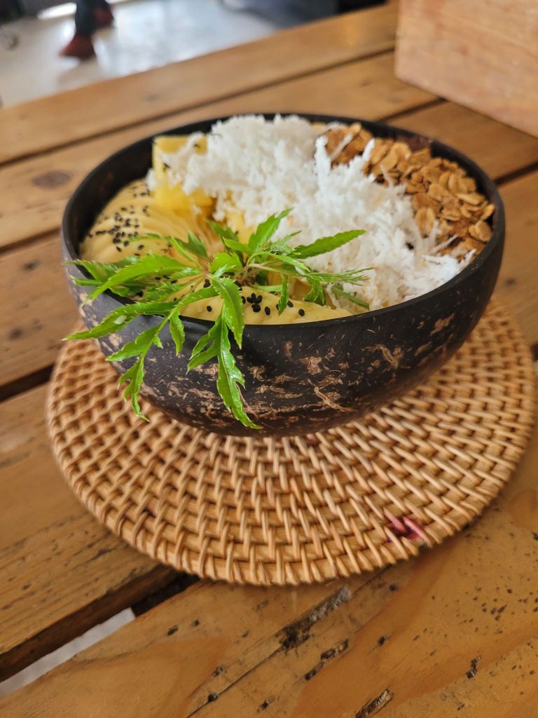 Frukost hos grannen, Balance. God acai bowl och kaffe.