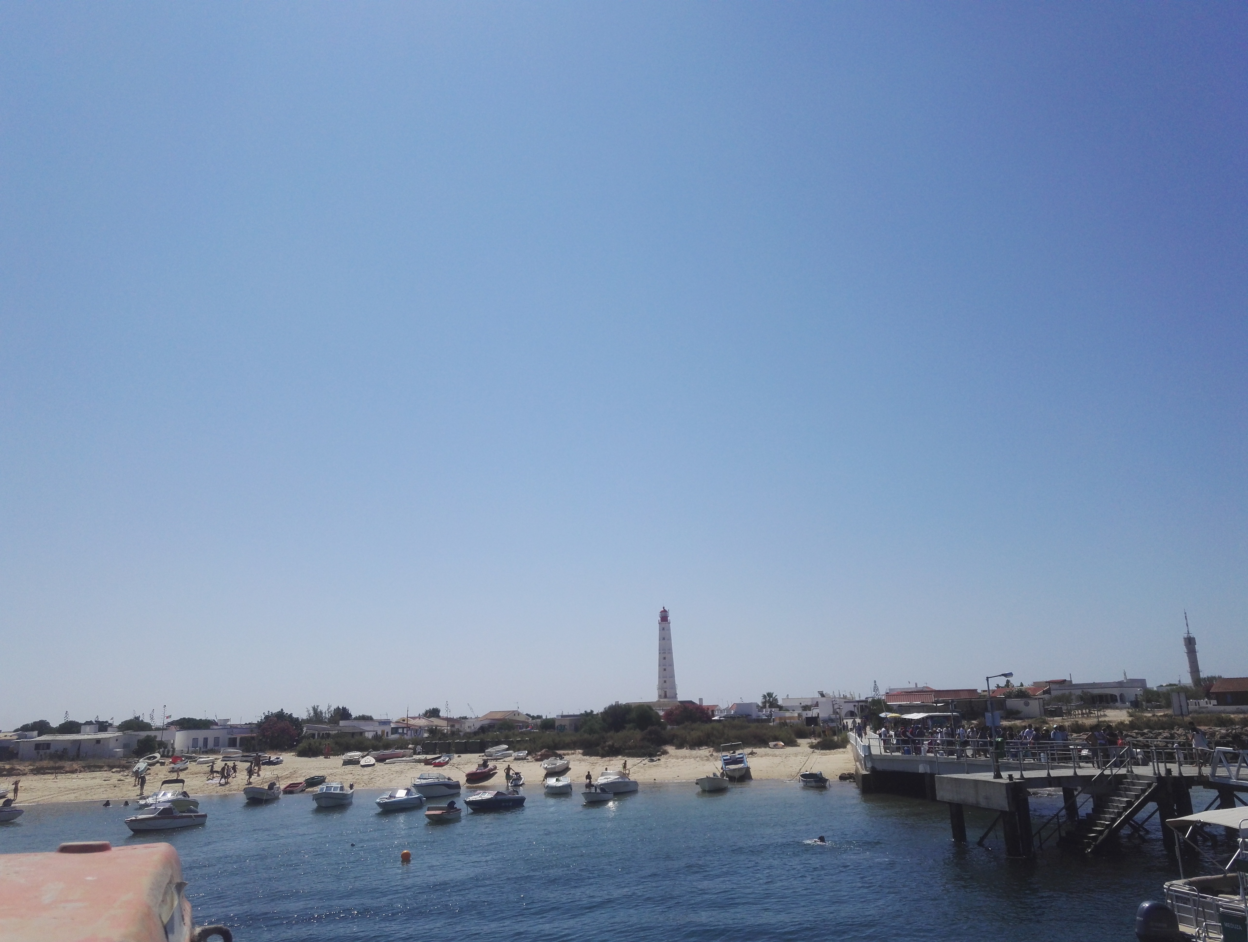 Packade ryggan och tog båten till Farol, en ö med fantastiska stränder. Farol betyder fyr på Portugisiska. Båten var fullpackad med strandsugna människor. Många locals, kylväskor fyllda med mat och dryck. Parasoller, solstolar. Rutinerade människor. De är så vackra människorna här i Portugal. Vänligheten gör de ännu vackrare. Älskar språket. Som jag inte förstår så mycket av, ännu. Ska lära mig.