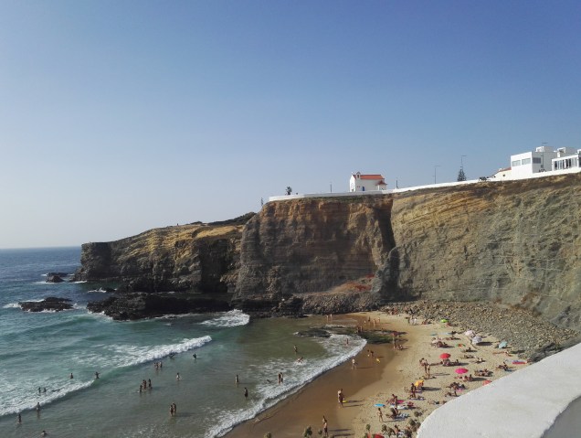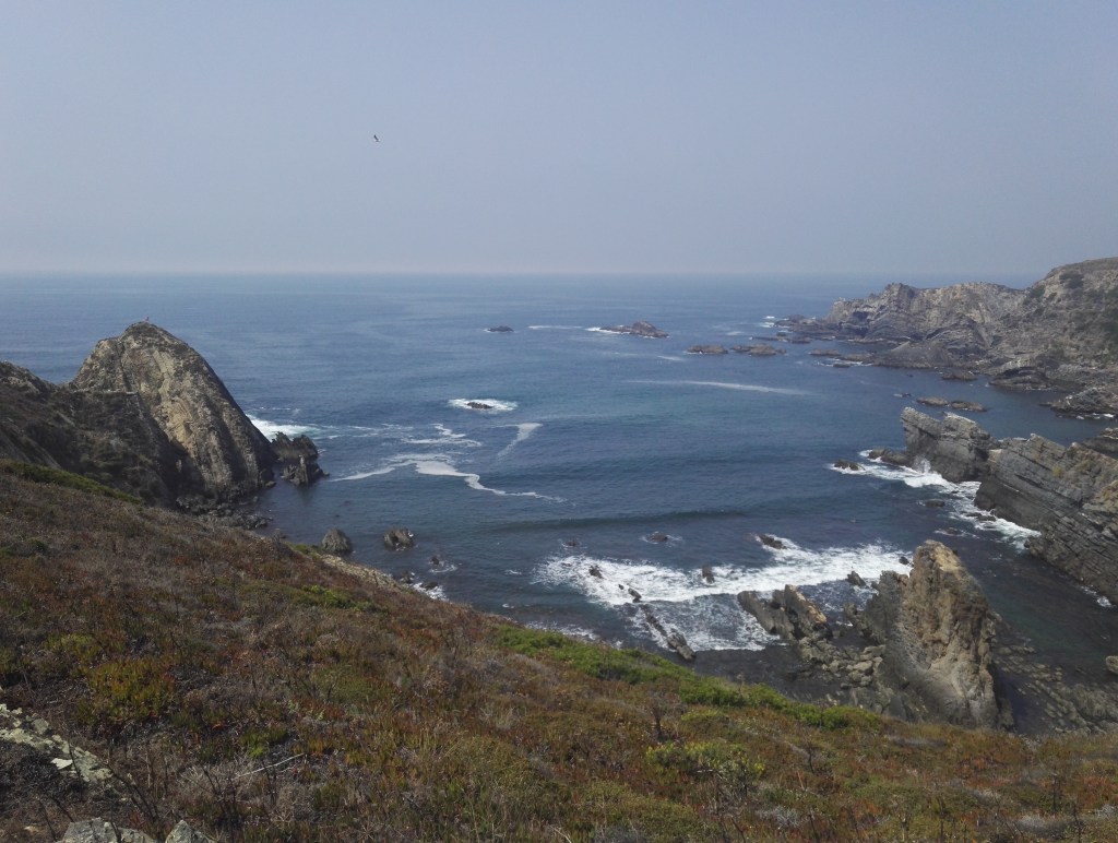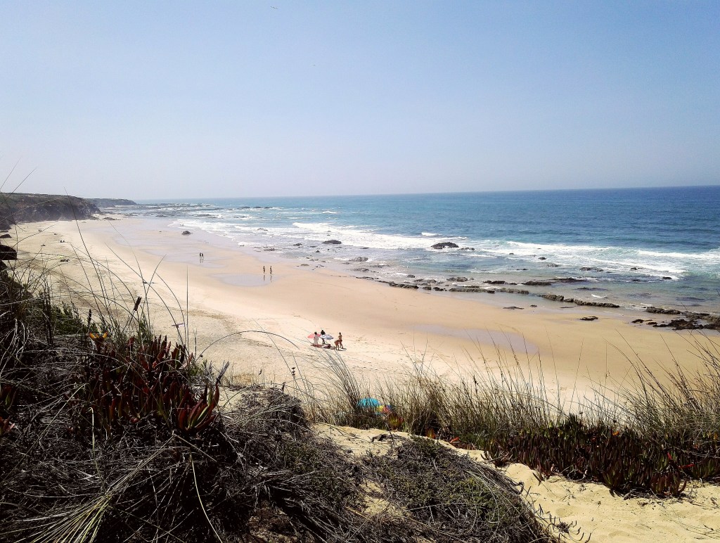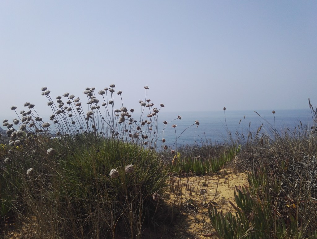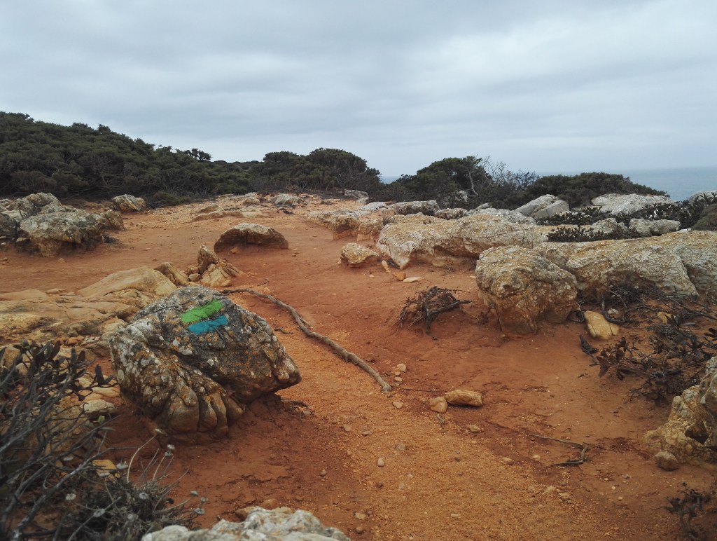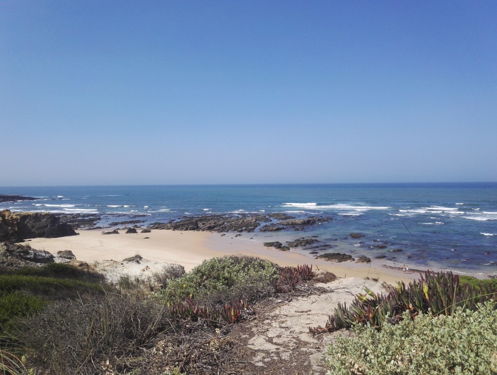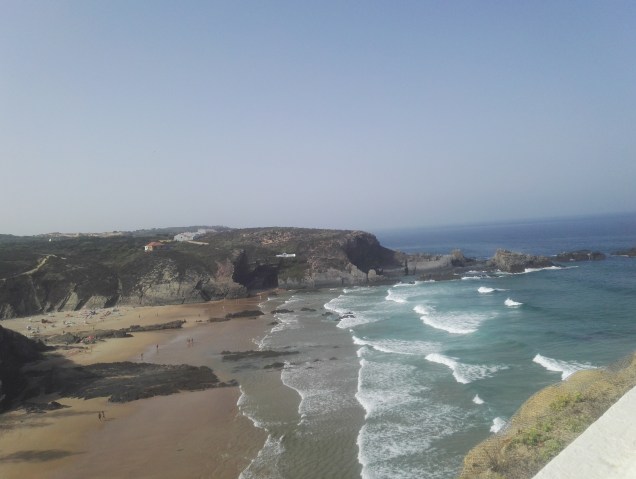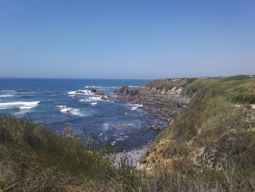 Håller med ett par jag träffade i Odezeixe, att den här sträckan är riktigt tråkig. Bara grusväg, där massa bilar kommer och kör, på väg till olika stränder. Efter en stund kommer lite variation. Kommer nog lite lost, men så hittar jag tillbaka till leden igen. Följer blå/grön fisherman. Startade med vit/röd Historical. Lite roligare att gå, en bit i alla fall. Sedan kommer en jobbig sträcka, massa sten, gäller att hålla tungan rätt i mun. Har verkligen inte lust att stuka foten här. Möter mer och mer vandrare. En del balanserar i flipflops. Är ni helt korkade eller…..