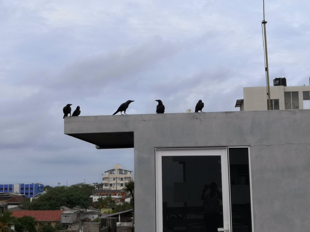 Var uppe vid poolen, andas och se havet. Lite kompisar var där, Sri Lankas svar på fiskmåsar.