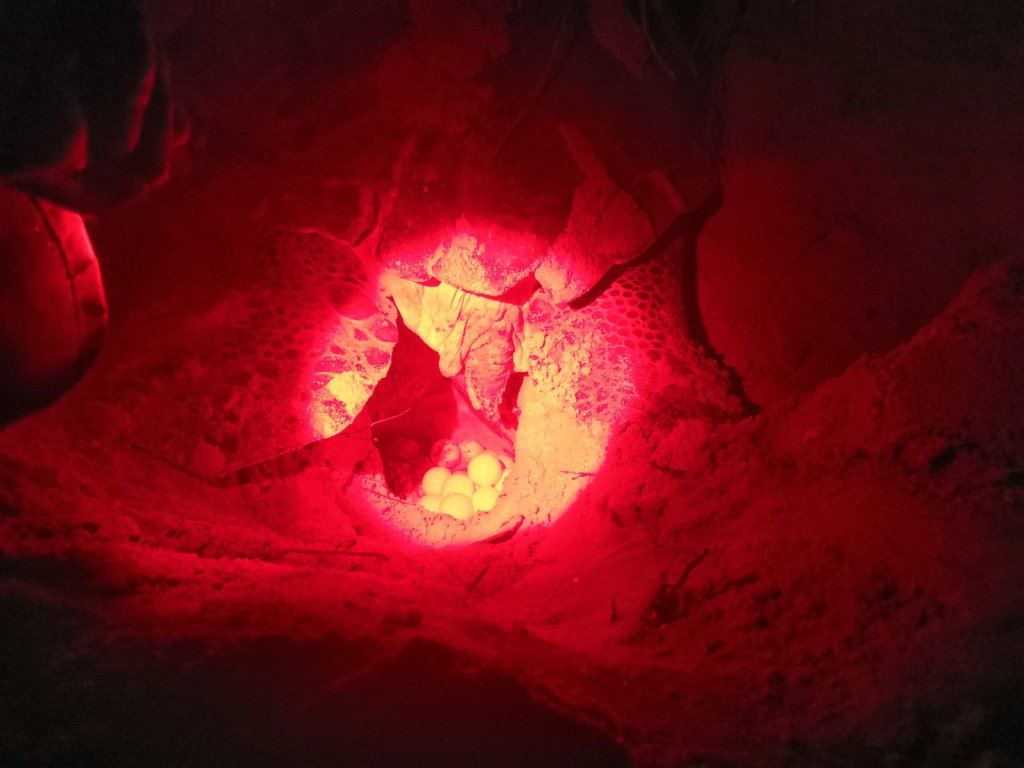 Sedan vad det dags för oss att komma fram. Viktigt att inte använda blixt eller ficklampa, då det stressar och stör dem. Bara rött ljus är tillåtet. Helt magiskt att se denna gigantiska green turtle på ca 40 år och 1 meter lång, pluppa ur sig drygt 200 ägg. Ser ut som pingpongbollar. Var någon decimeter från henne. En sån mäktig känsla, svårt att ta in att jag var så nära.