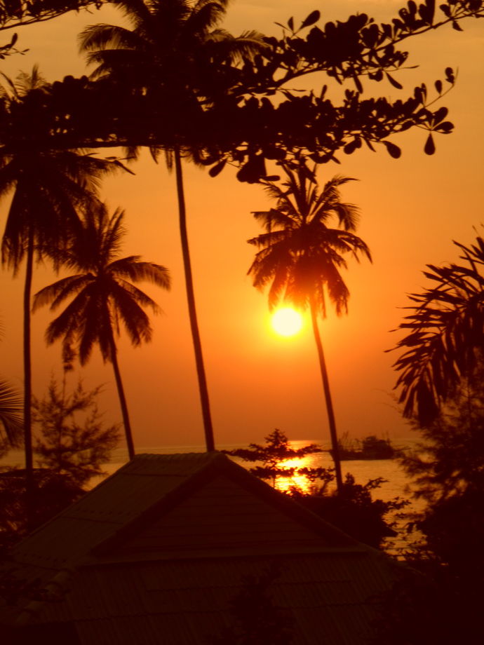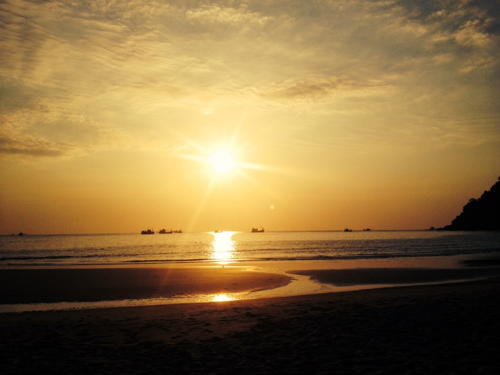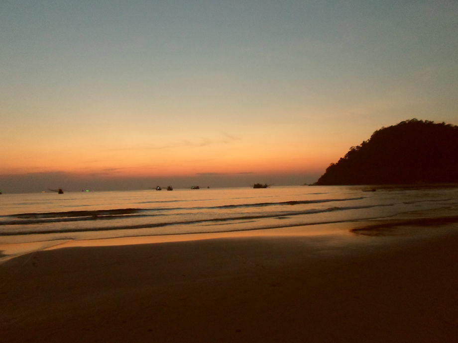 Hade 2 nätter bokade och de var tyvärr fullbokade för jag ville stanna längre. Men hittade ett ställe inte långt därifrån, när jag tog hojen och begav mig på ett huppegupptäcksfärd, Ao Phong på södra delen. Även det en liten pärla, 7 bungalows, egen strand. Ägs av en tysk. Bara älskar dessa paradisstränder, Man är i princip ensam på stranden. Det är så vackert. Hängde på beachen till solen försvann, då förflyttade jag mig till hängmattan. På morgonen steg jag upp tidigt för att se soluppgången. Tystnaden, dagen som gryr. Meditation på terrassen några steg från havet. Kan en dag börja bättre?