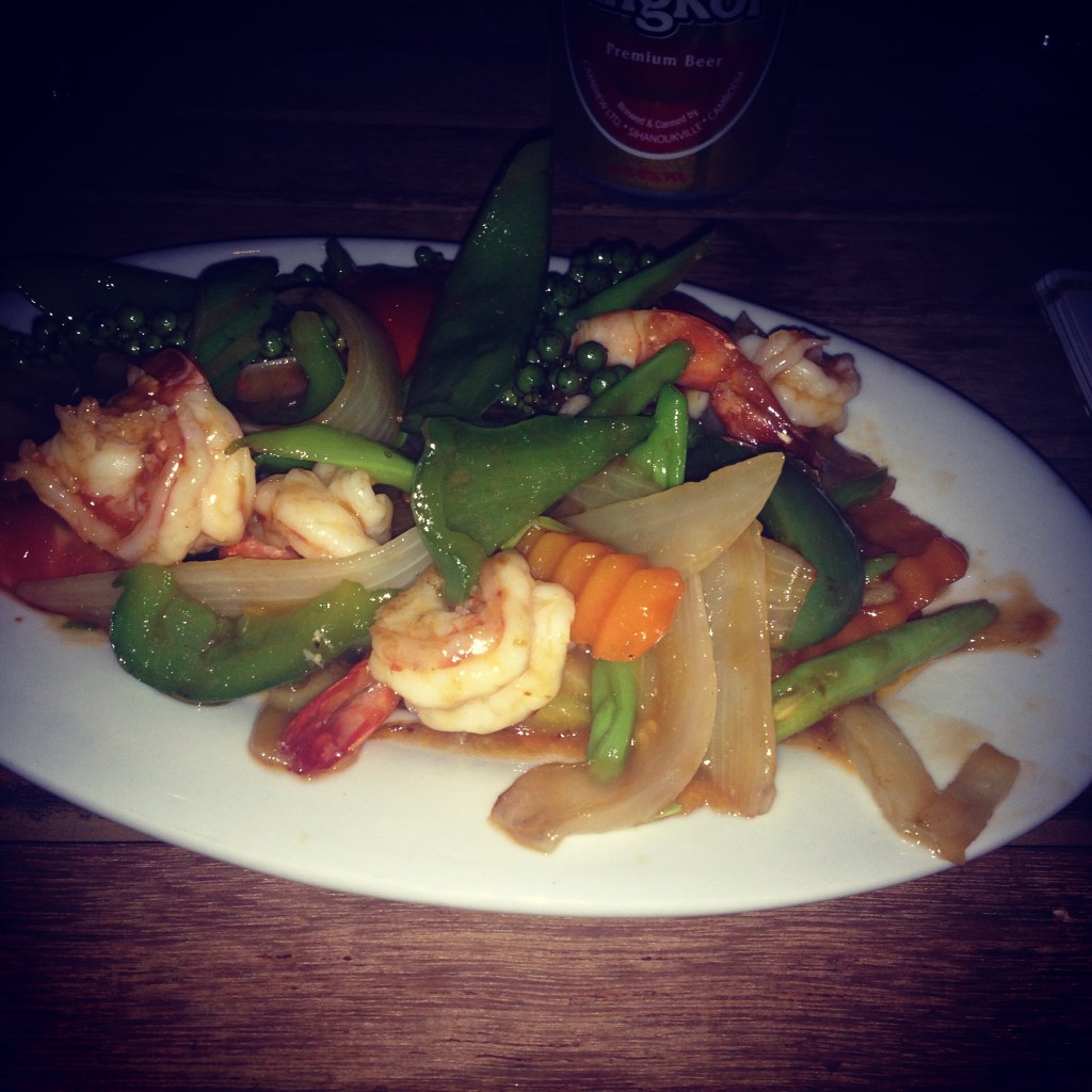Helt ok ställe, ganska nyöppnat och här ska jag bo 2 nätter. I första hand för att fixa visum till Vietnam. Tog en välbehövlig dusch, man blir liksom full av vägdamm, när man reser och svett förstås. Härligt att trängas i en minibuss med dessa fräscha dofter. Mumma 🙂 Varken kände för eller orkade gå till en restaurang för att käka, var inte vrålhungrig precis. Så jag ”drack” middag. Fasta kan man säga. 3 Angkor och Pringles chips. Helt ok. Susade lagom i skallen och somnade som en stock.