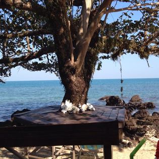 Tyvärr kunde jag bara bo en natt. Ägaren fixade boende på nordvästra sidan, vid piren. Happy Days resort. Även dem med egen strand. Kan bli tjatig men det var oxå toppen. Relativt nyöppnat, tror de hade 12 bungalows. Tyst och lugnt och skönt. Har inte skrivit så mycket om mat jag har ätit. Bu eller bä. Men min mage har varit ganska kass i snart en vecka och därför har jag varit försiktig med maten. Hade medicin kvar sedan Ko Tao förra året så har käkat upp den kuren och det har blivit bättre. Men iaf på Happy Days testade jag Penang Curry, dock bara med grönsaker. Men det var den godaste maten hittills. Mycket beroende på att magen inte tjorvade men oxå på att det smakade riktigt gott. Kommer nog med mera inlägg när det gäller maten.