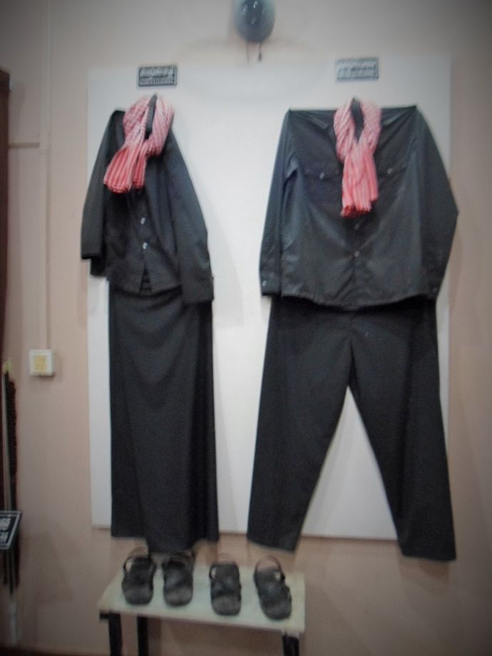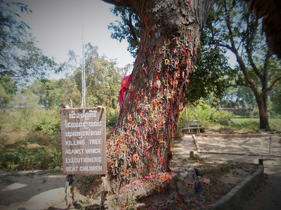 Började med Killing Fields, Dödens fält. Där var det mycket välorganiserat, man fick hörlurar och spelare samt karta/översikt på svenska. Det var faktiskt svenskar som läst in det. Mycket bra. Alla gick på området, där det skulle visas respekt, inte prata högt mm. Det var en mycket bra idé med ”egen guide” i öronen. Man blev väldigt fokuserad och lyssnade koncentrerat. Mycket gripande. Svårt att ta in allt, denna grymhet som ägt rum här. På en del ställen låg det ben och kläder på marken där vi gick. Kommer fram under regnperioderna. Blodfläckar. Vi var tagna alla fyra. Tog oss tid att verkligen gå igenom allt, tog 2-3 timmar.