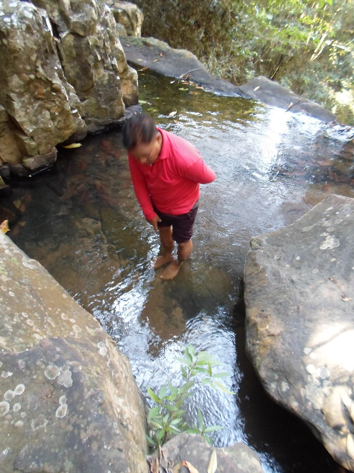 På vägen ner gick vi stannade vi vid ett naturligt ”fiskspa”. En liten damm med fiskar som äter huden på dina fötter. Precis som ett fiskspa. Sen druttade jag i, en lös sten gjorde att jag trillade. Det blev lite skrapsår, men hade köpt en universalgrej på Koh Kood som är bra för allt,, som jag smetade på. Det gjorde att läkningen gick snabbare.