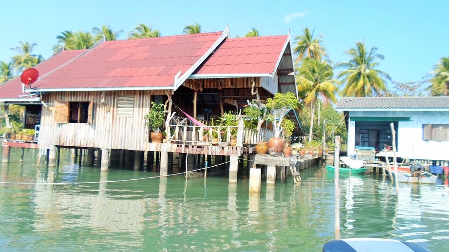 Speed boat till Koh Mak på morgonen, tog 50 minuter. Härlig färd. Stannade till vid Koh Wai på vägen. Hade funderingar på den ön, men blev 4 dagar på Koh Mak istället. Kände redan när jag klev iland på ön, Avslappnat, go känsla. Här ska jag trivas. Hann med en iskaffe i väntan på Banana sunsets supertaxi 🙂 Såg en orm på vägen som höll på att sluka ett byte. Läskigt! Men jag satt tryggt i ”taxin” Banana Sunset ligger på sydvästra delen av ön. Lite avskilt. 6 bungalows. Ingen strand dock men en så skön känsla att vara där. Riktigt avkopplande. Lånade cykel och hojade runt. Hittade en strand, helt i Gunillas smak. Näst intill öde. Det är så jag vill ha det. Låg några timmar, tog en öl på ett härligt och avslappat ställe, Island Hut. Käkade middag på Banana i solnedgången. Live musik, härlig stämning. Underbar personal. De har även tält som man kan bo i. Avstår det, är klar med tältande, det har jag gjort tillräckligt i mitt liv.