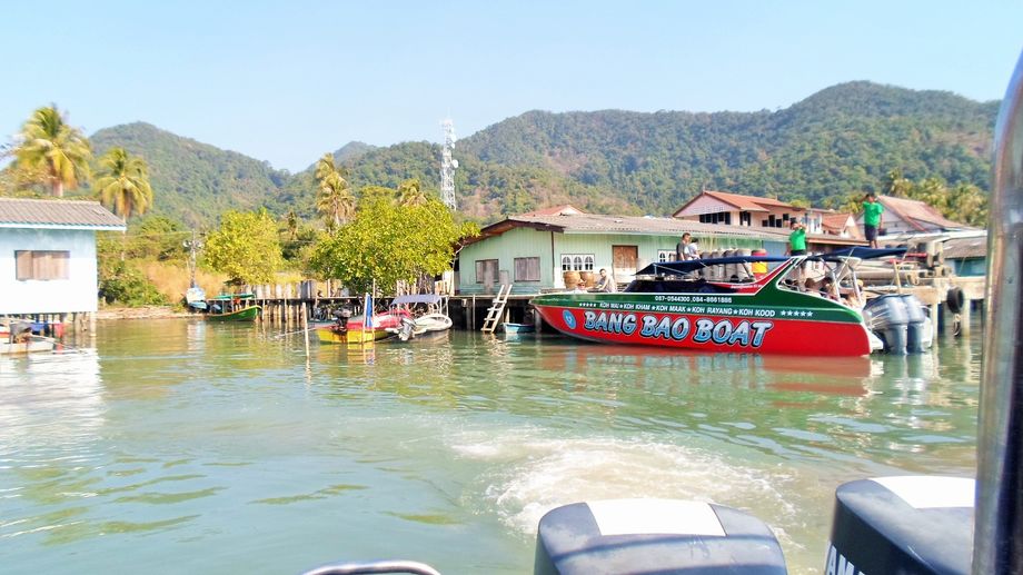 Upp tidigt som vanligt, sover sällan längre än till halv 7. Vill nyttja dagen. Däremot slocknar jag tidigt på kvällarna. Ålderstecken????? Fast det är olikt mig. För jag är definitivt inte en morgonmänniska annars. Men nu gillar jag att gå upp tidigt, meditera och ta det lugnt innan det är dax för frulle. Så även denna morgon. Hann med en promenad längs stranden, ta in det sista av Koh Mak. Njuta av stunden. På grund av missförstånd så blev det tight med tid innan båten skulle gå. Jag trodde en taxi skulle hämta mig….. Men det blev att hoppa på en moppe med all packning och skumpa iväg i den högsta hastigheten som gick att köra på de skumpiga vägarna. När att frukosten kom upp. Hann i alla fall. Det har blåst ganska mycket de senaste dagarna och båtarna har haft svårt att lägga till vid den norra piren. Skulle varit på ö utflykt igår men på grund av vindarna körde inte båten. Men idag kunde de i alla fall lägga till vid norra piren. Strandvägen är det inte långt från Happy Days men med tung ryggsäck har man ingen lust att gå om det går att åka. Motvind och höga vågor ut från ön, gjorde att man fick sig ett par rejäla duschar och resultat. Dyngsur från topp till tå eftersom jag satt sämst till av alla. Längst bak i mitten…… Fick många att dra på smilbanden i alla fall. Det bjuder jag på. Whatever, man torkar ju. Världsliga ting. Det är ju bara vatten. Tog ca en timme till Koh Kood och när vi väl rundat udden kunde man njuta av turen, då vi inte gick mot vinden. Fick en sightseeing runt ön på köpet. Då båten släppte av vid respektive resort. Utom Gunilla då, som fick vänta till sist. Blev hämtad vid sista stoppet av Sunshine Resort.