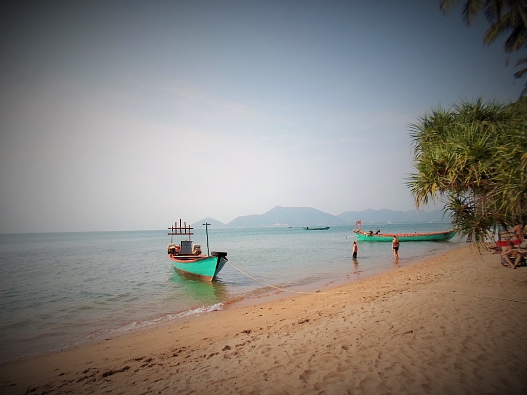 Upp tidigt. Packa klart, Sista munkceremonin. Meditation. Fick en farvälkram av dotter och far i ägarfamiljen. Lovat att jag ska återvända. Det ska jag definitivt. Perfekt ställe att relaxa och varva ner. Upphämtad av taxi till båten. Reste med Koh Kood express till fastlandet, Laem Sok, Trat. Många thailändare, troligen som besökt ön över helgen och skulle hem igen. Sen kom dem då. Har inte skrivit om detta förut. Ryssarna, ursäkta mig, men de är inte trevliga. Framfusiga, tar plats, gapar och skriker. Det finns säkert undantag. Kom ett gäng på båten och ”omringade” mig. F-n oxå tänkte jag. Troligtvis hade de festat hela natten och gått direkt till båten. Precis när vi skulle lägga ut kom ett par lokals, tjejer från en restaurang. De hade tydligen tagit springnota därifrån. Istället för att betala så började de tjafsa. Detta gjorde att vi blev försenade. Det är en grej, men så respektlösa som de är. Till slut var dem tvungna att betala. Puckon, ursäkta uttrycket. En liten parentes bara och reflektion. Jag är inte ensam om att tycka så här. Jag är ingen surkärring men har man inte vett att uppföra sig reagerar jag. Båtfärden tog 1,5 timme. Ny och fräsch båt, till och med wi-fi. Blev lite blåsigt ett tag, på med långtröja, eftersom jag satt ute. Taxi till bussterminalen i Trat. Där blev det jalla jalla, minibusssen till Sihanoukville skulle precis gå i och med att jag var den sista att fylla bussen. I ilfart till toa, var bara tvungen. En fransman lovade att ”hålla bussen” till jag var tillbaka. Så på väg mot ett nytt land, Kambodja Vi var en kvartett ensamresenärer som höll ihop, över gränsen, visa, ända till Sihanoukville, där skildes våra vägar. Det var jag, en fransos, en ukrainare och en tysk och så Bellman 🙂 Hjälptes åt vid gränsen att fylla i Visumansökan, gick otroligt smidigt och fort. Fick sen vänta nån timme till att minibussen hade fyllts upp, innan färden började till Sihanoukville. Vägarna i Kambodja är inte att leka med, så fort går det inte. Deras infrastruktur har väl inte riktigt hängt med. Till skillnad från Lappland där det är renar som blockerar vägarna, är det här kossor. Ungefär lika mycket hjärna hos bägge djuren. Resdagar blir det lite si och så med käk, blir oftast att leva på frukt och vatten. Men det funkar. Så länge jag får mina älskade, goa, små bananer, klarar jag mig långt. Efter 11 timmars resande kunde jag checka in på Golden River Bungalow, ligger längst ner på Otres2 beach. Varför längst ner? Gunillasyndromet 🙂