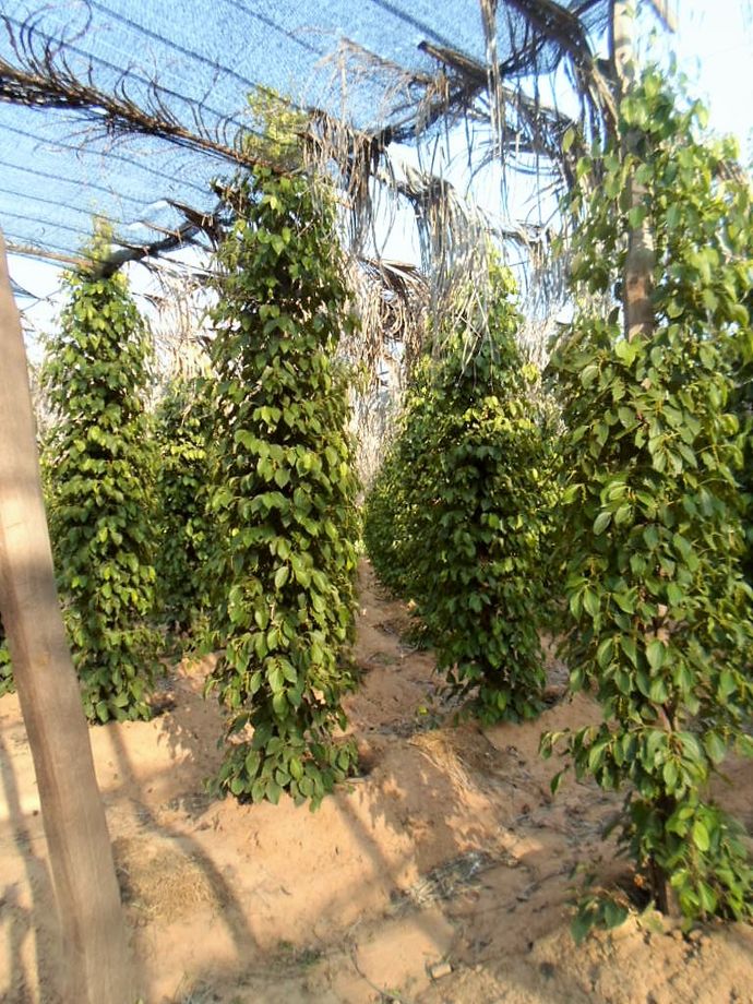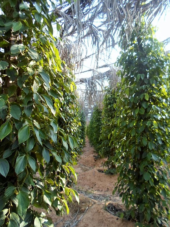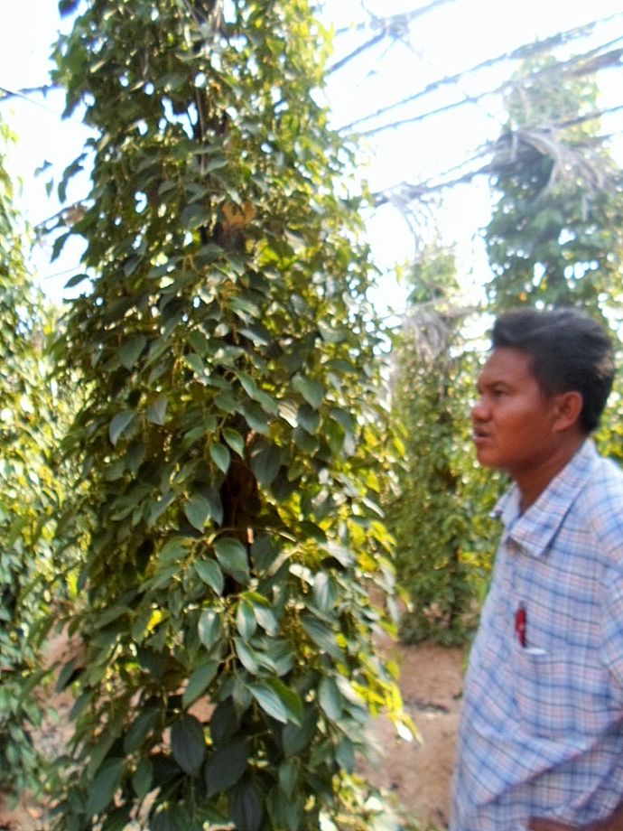 Efter att ha mailat och frågat om jag kunde få komma och se farmen, var jag mycket välkommen. Fick nummer till Mr Dee, Tuktuk förare, som kom och hämtade mig och körde mig ut och även guidade mig. Jättehäftigt att se. I dagsläget har de 2000 plantor som nästa år kommer att vara klara för första skörden. Fick lära mig allt om de olika pepparsorterna. Varje planta ger 2-3 kg peppar. Svart är den billigaste av dem. Odlingen är helt ekologisk, inga bekämpningsmedel är tillåtna. Det är tvunget för att de ska få kalla det Kampot Pepper och få stämpel på att det är äkta vara.