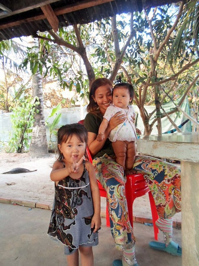 Jättehärlig kvinna i familjen som sköter farmen. Hon väntar tvillingar, har redan 5 barn sedan tidigare. Hujedamej På hemväg fick vi punka på tuktuken. Så det blev att stanna och fixa det hos en lite familj med två sötnosar till barn. I morgon väntar ett nytt land, Goooooood moooooooooorning Vietnam Kambodja är en ny favorit och jag kommer definitivt att återvända. Finns flera platser som jag vill se. Satt och pratade med Mr Dee en lång stund. Hur tufft de har det, tjänar inte mycket per dag. Med 4 barn och fru så finns det inte utrymme till att spara något.
