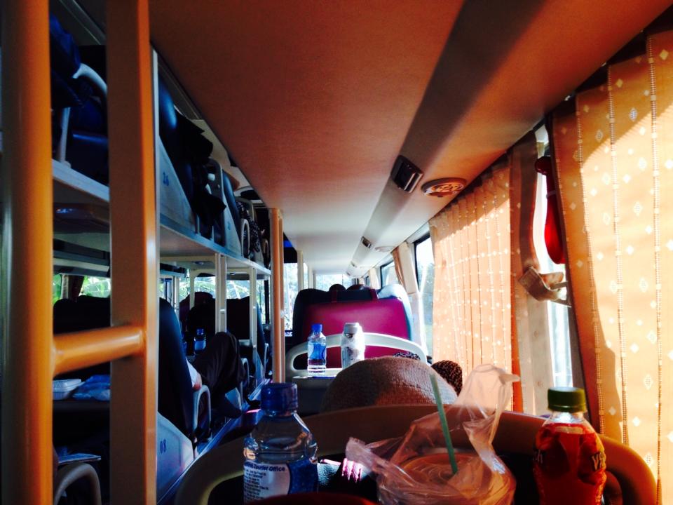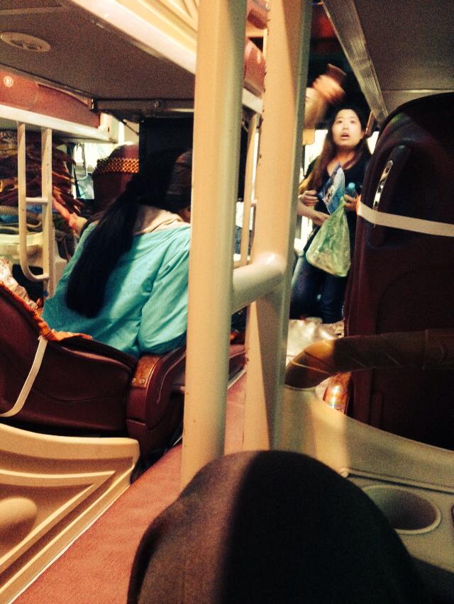 Bussen var fullbokad men ändå stannade han och plockade upp locals så gångarna var fulla med folk som låg där. Trafiksäkerhet, vad är det? En tjej framför mig spydde så det stod härliga till. Sleeping bus, blev nightmare bus.