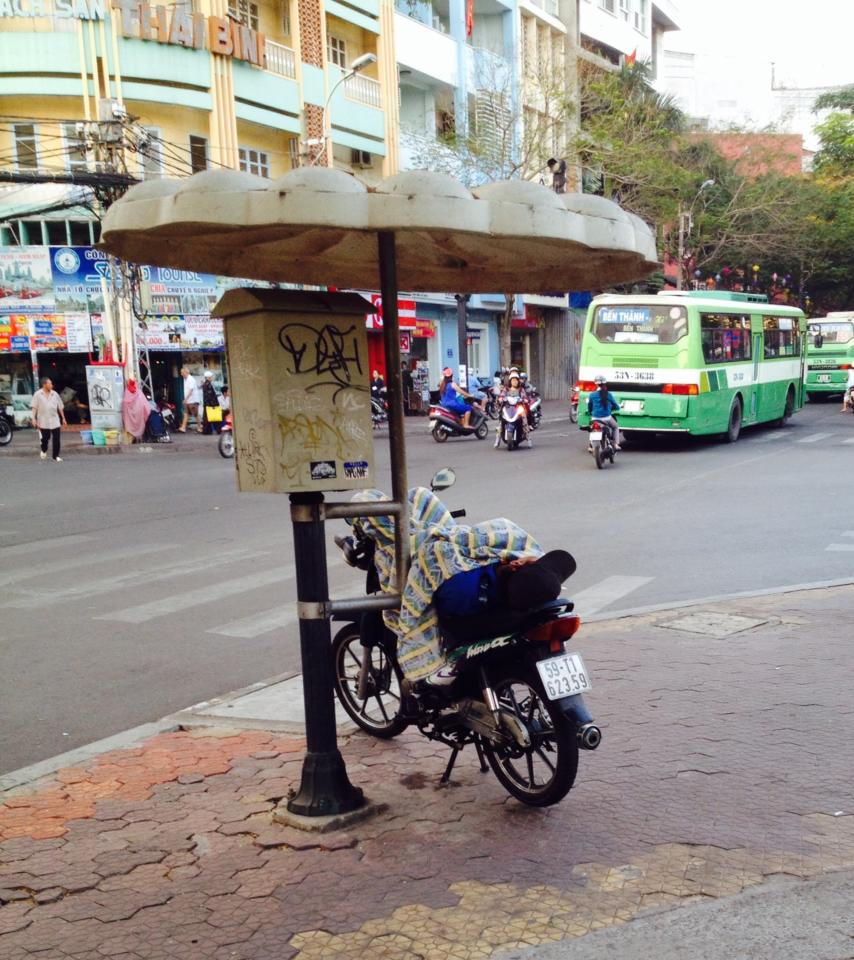 Nåväl, taxi med mitt hem, Haglöfs och jag, till Sihn Tourist. Smått kaotiskt utanför. Bara stå och iaktta denna cirkus som i princip alltid föregår innan bussen lättar på gasen och drar iväg med trötta, nyvakna människor, på väg mot nya outforskade mål. Nåväl, min tur till Mui Ne, var överbokad så det kom en buss till. Jag visade biljetten, jo du är på rätt buss. Fick en plastpåse att lägga skorna i. Du går inte med skor på en sleeping bus, för det var just var det var.