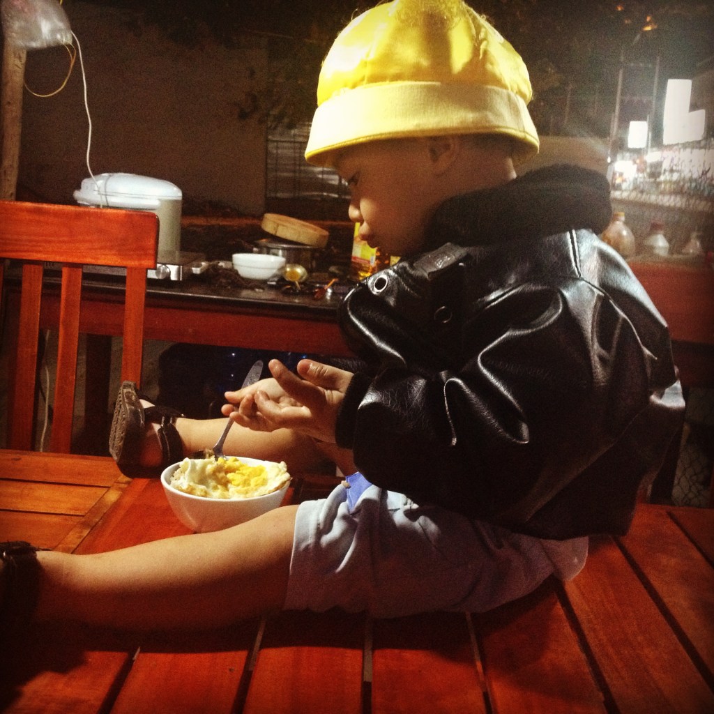 Hittade ett trevligt boende vid stranden, 12 dollar/natt m a/c, bra wifi, rent och fräscht, egen terrass. Kan inte bli bättre. May Vo heter det, ligger i mitt tycke på rätt sida av Mui Ne, bort från stressen vid kitesurfingställena. Här är det lugn och ro som gäller på stranden. Fiskarna som dominerar och de¨ går ut tidigt på morgnarna och ibland på kvällarna. I sina runda baljor till båtar. Häftiga att se.