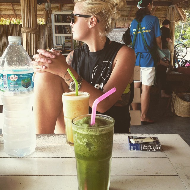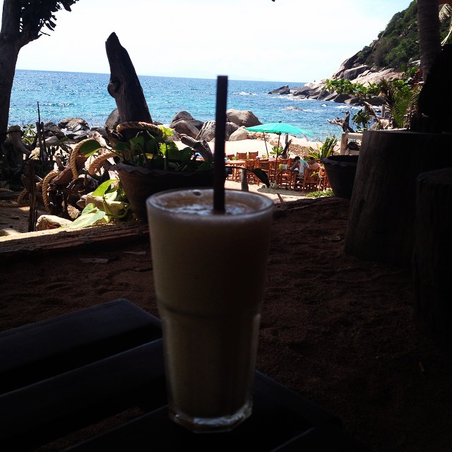 Blev en hälso smoothie på Living Juices till frukost. ”good morning Koh Tao” var namnet. Fick en massa energi och sen gav jag mig av mot Mango View point. Rejält jobbigt och varmt. Tog ca 45 minuter från hotellet. Ett stopp hos Butterfly Villa Garden och en kokosnöt. Lite snack med ägaren som gav mig blöta, kalla handdukar att svalka ner mig. Mötte moppar på vägen upp som ropade uppmuntrande ord, tack för det 🙂 Men när man kommer fram får man belöningen. Magnifik utsikt över västra sidan av ön och söderut. Vill man stanna och tälta går det utmärkt. De har två tält som man kan hyra. Hade kunnat fortsätta ner till stranden Mango Bay, men tyckte den här trippen var tillräckligt. Strandhäng vid Bowtong Resort, där jag bodde 2012, blev väl mottagen av en tjej som jobbar där som väl kommer ihåg mig. Undrade varför jag inte bor hos dem. En liten vit lögn när jag sa att jag bor hos Anna….. Kvällens middag blev på häftiga Whitening i Mae Head, en favorit. Goda drinkar, god mat och vackra solnedgångar.