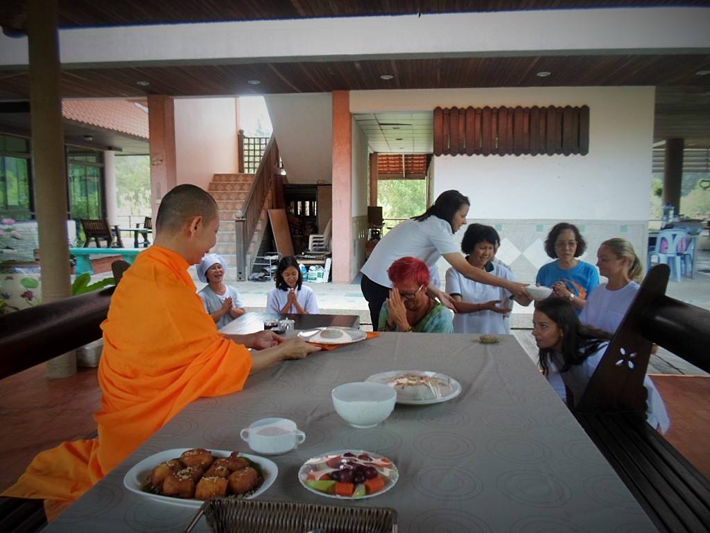 POP-house är en egen organisation men som ändå hänger tillsammans med Dhammakaya Temple, munkarna som hjälper oss kommer från templet och det är deras del av buddismen de lär ut. Delar rum med 5 andra kvinnor, från Kanada, USA, Iran, Singapore. En brokig samling människor med varierande erfarenhet av meditation.