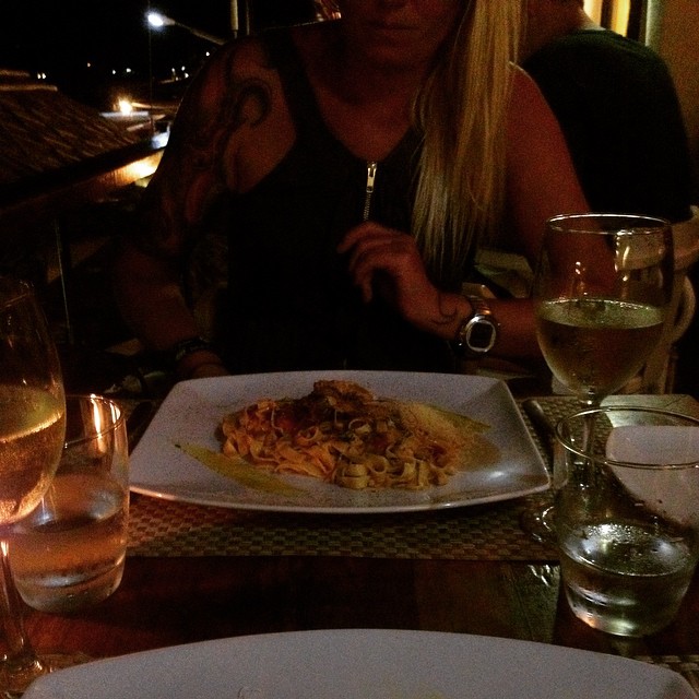 Vilken mat, gode värld!! Till förrätt delade vi på en Toast Skagen och ja, den smakade som hemma. Varmrätt blev det barracuda för barracudorna. Gott gott. Slog till på en flaska rosé till det. Riktig festmåltid.