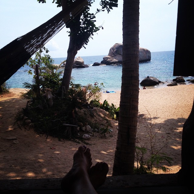 Gårdagen blev slapp, fixade och donade. Låg på beachen och tog det bara lugnt. Ladda inför fredagen och helgen. Käkade frulle på New Heaven idag med Anna, som var ledig. Drog på moppen till Chalok. Gillar Chalok, atmosfären och goa stämningen där. Passar mig bra. Köpte en ”happy hammock” till Erik, sonen. En kollega till Anna, vars franske man har detta ställe som säljer de här vackra och härliga hängmattorna. Har även ett café med mycket gott kaffe. Kolla in dem på facebook : Hammock Cafe Plaeyuan. Hängmattan kommer att bli perfekt på Eriks balkong.