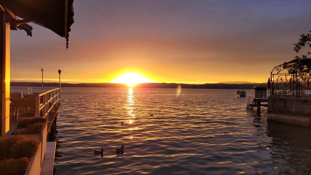 Handlade lite kvällsmat och en 3 pack piccoloflaskor av Prosecco. Fantastiskt trevlig personal i affären, som låg i samma hus som B&B:et. Gick en sväng på kvällen innan solnedgången, ville se den över berget. Men vädret var inte på min sida. Blåst och regn. Jag var den enda ute på piren. Himlen blev mörkare och mörkare. Så promenixen blev inte så länge.