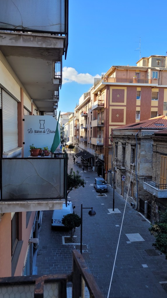 Upp tidigt. God frukost. Gott kaffe, kokt ägg, toast och grönsaker. Pratade med Matteo. Han och hans fru, bor i våningen bredvid. Har haft det här stället sedan 2018, men som sidorörelse. Han är advokat och Barbara jobbar med logistik.