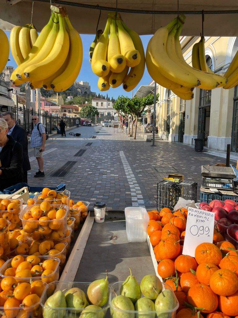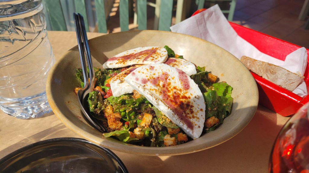 Käkade ute idag. Första stället blev jag lite härsken och gick därifrån. Ingen visade något intresse. Fulla bord med disk som ingen dukade undan. Damen som jobbade, satt och rökte. Gick vidare till ett gyrosstället. Där fick jag kämpa för att få uppmärksamhet. Ägaren brydde sig inte, satt och pratade med sina kompisar, som kom efter mig och fick beställa. Men nu var jag rejält hungrig, så jag gick fram och frågade om jag kunde få äta här. Så blev det. En gyros med haloumi. Jättegod.