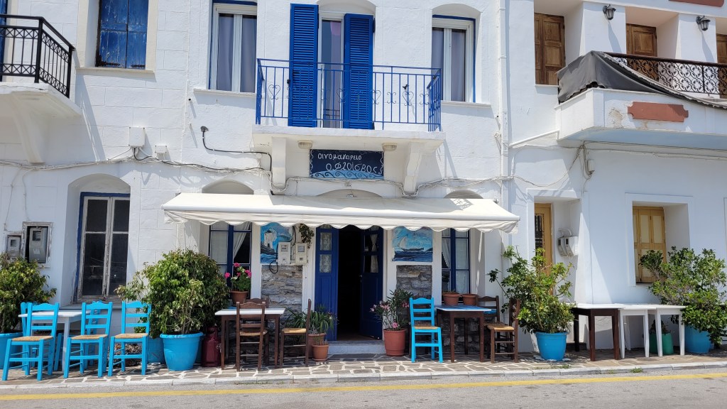 Lite kyligt och blåsigt ute, in med packning och ut och jaga nåt att äta. Souvala är verkligen litet, mindre är Armenistis, skulle jag tro. Blev en pasta Napolitiana, inte världens godaste, men en bukfylla i alla fall. Handlade dryck och snacks i en något suspekt butik. Hem och packa upp, en dusch, sen i säng. Ska bli spännande att se om jag har någon soluppgång i morgon. Har ingen aning om vilket väderstreck jag är i.