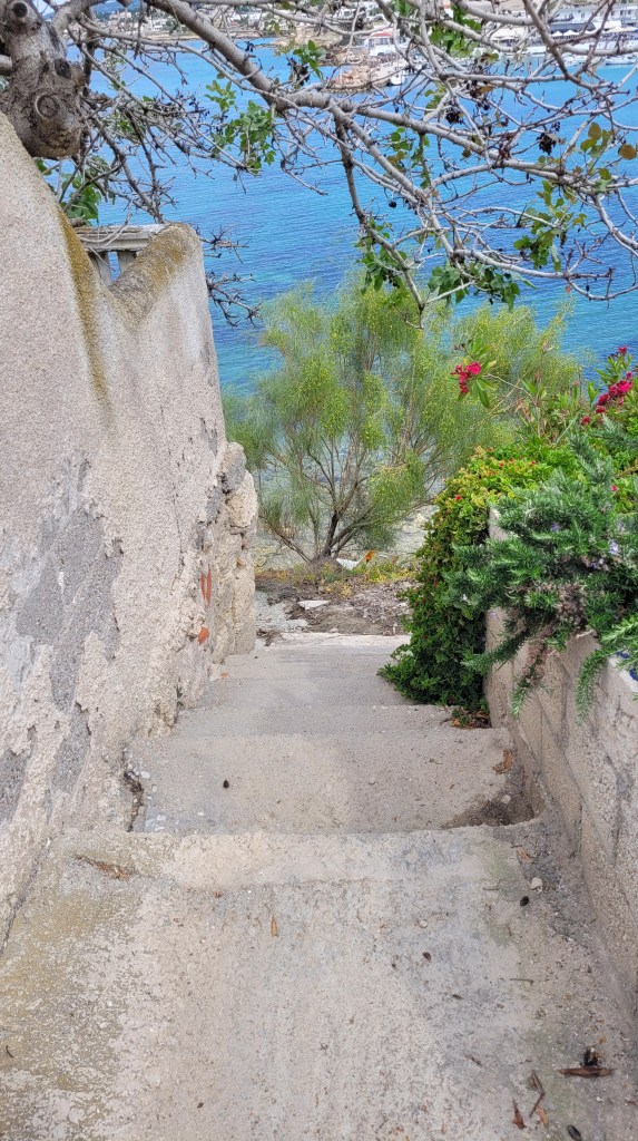 Eftersom det är fredag, har restaurangen på hotellet öppet. De har öppet fredagar och lördagar i lågsäsong. Träffade hotellägaren, mycket trevlig man. Pratade mycket om Sverige, framförallt norra Sverige där han varit en del. Gav mig tips om en fin promenad längs havet.
