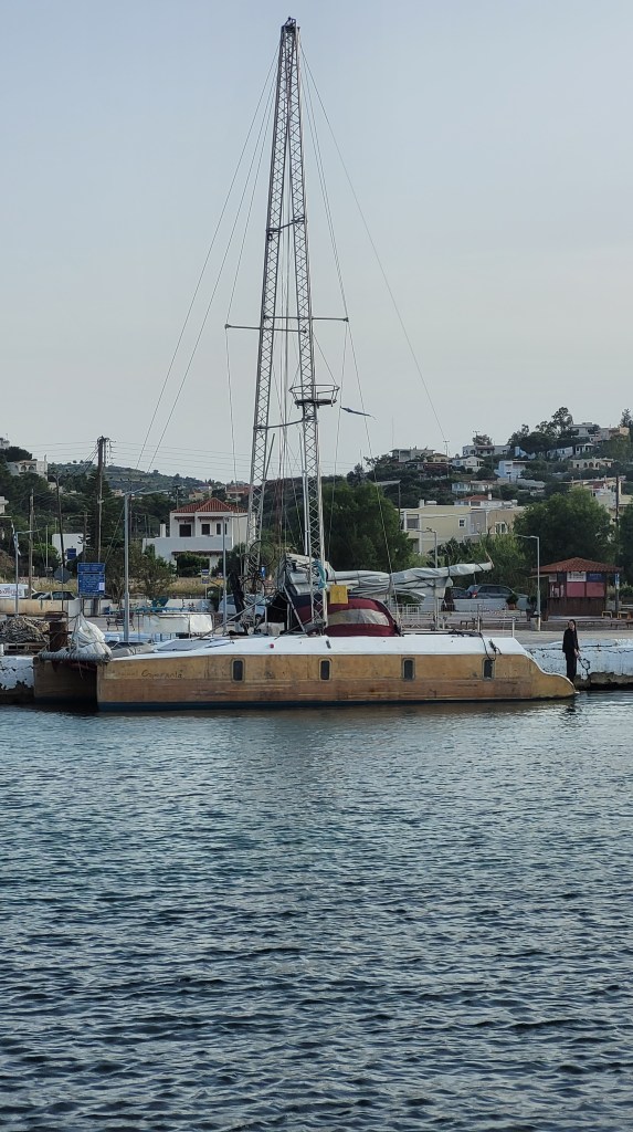 Blev en god kaffedrink på hemvägen. Kollade en läcker katamaran som kom in i hamnen. Såg ut som ett hemmabygge.