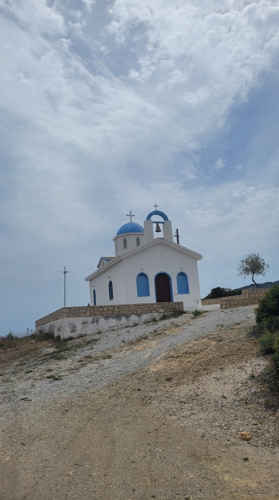Ingen gofrulle idag. Åt det jag hade hemma. Yogurt, frukt, nötter och kaffe. Sen gav jag mig ut på tur. Gick upp till ett lite kapell, rätt uppför. Tungt. Men inte så långt. Tog kanske 30-40 minuter upp. Vacker utsikt däruppe.