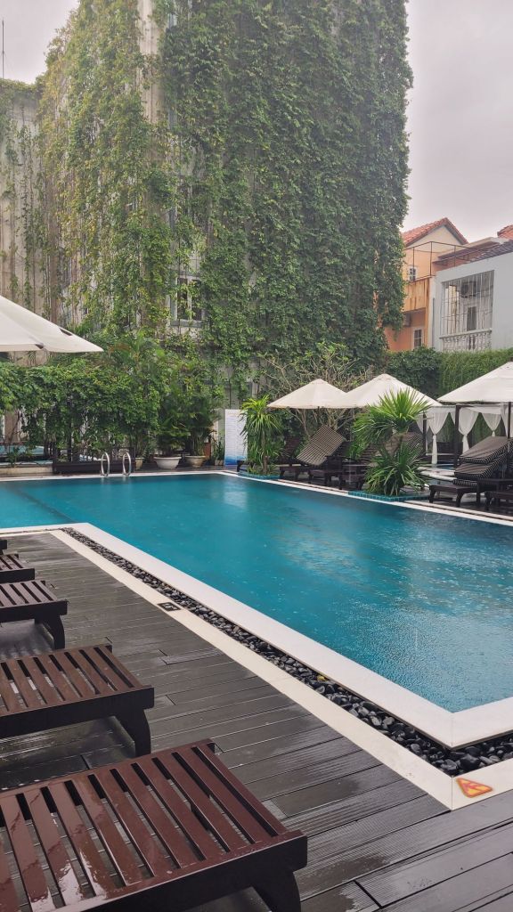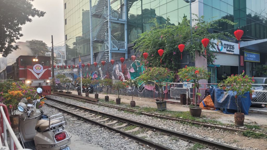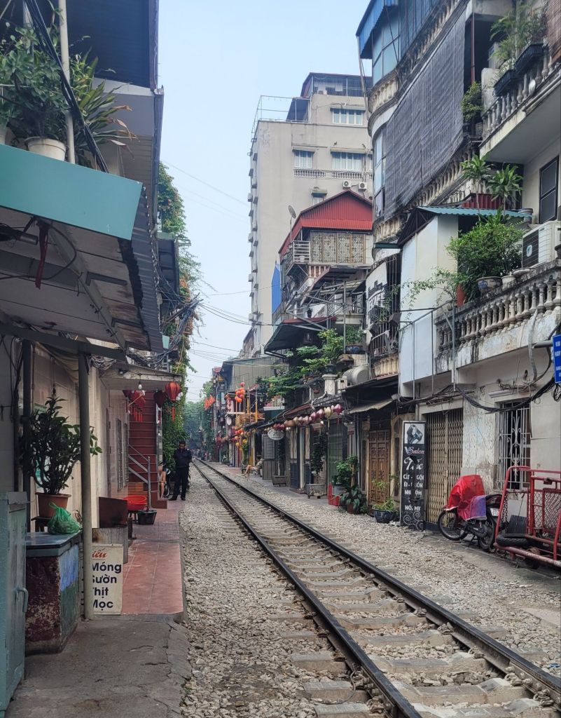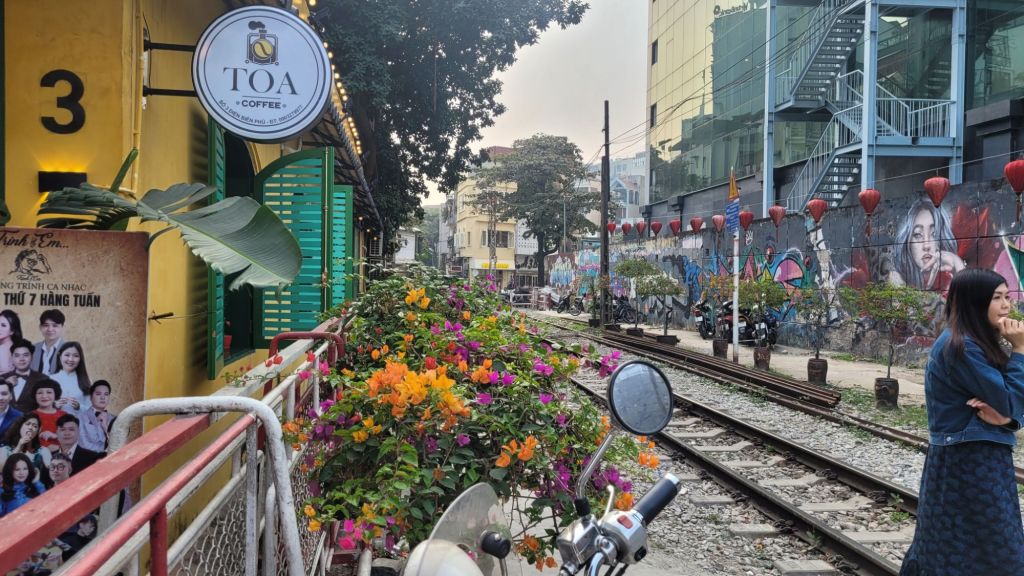 Efter frullen, drog jag upp till poolen och låg där några timmar. Så skönt. Målet för dagen var sedan Train Street. Lite hysteriskt. Satt mig på ett fik som ligger vid rälsen, TOA café Fräscht och läckert ställe. Blev salted coffee, svårtippat eller. Efter att ha fått i princip närkontakt med tåget, gick jag vidare till en vegetarisk restaurang, som ligger i närheten, The Veg. Blev en vegansk middag, nyttig sådan, som kontrast till pizzan jag käkade igår. En set meny med småportioner av. Pumpkin soup, Avocado/grönkålsallad, sötpotatispizza, mango chiapudding och 1 öl. Gott gott. Shoppade lite på vägen tillbaka till hotellet.