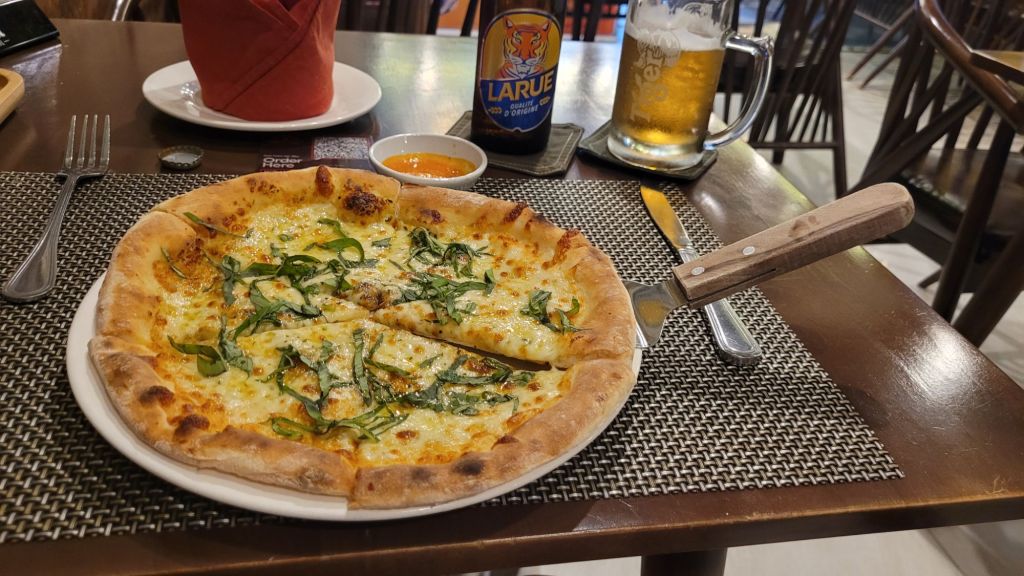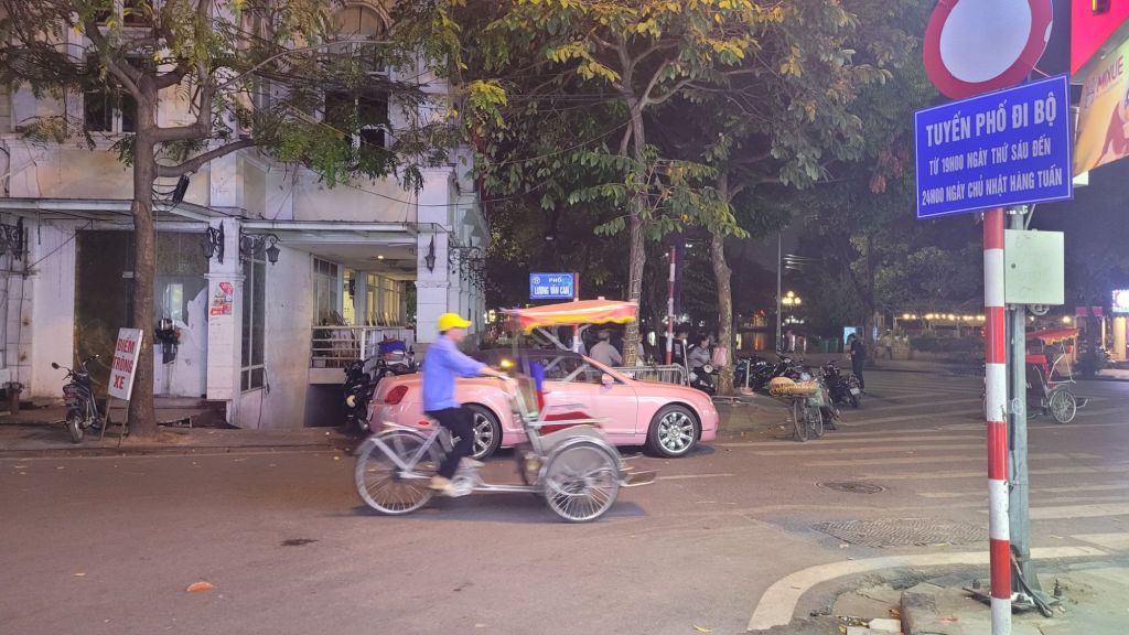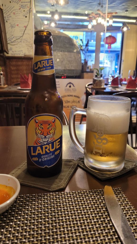 Anna, dottern, hade rekommenderat en restaurang med god pizza. Pizza 4p Så sagt och gjort, bokade bord, tog mig dit framåt kvällen. Ligger på samma gata där jag bott tidigare när jag var i Hanoi. Nära sjön. Tur att jag bokat bord. Lång kö utanför. Som jag kunde glida förbi. Pizzan, som hälften var 4 cheese och hälften Margarita. Happy Hour på dryck, så mitt glas sangria, blev två. Pizzan var jättegod. Men vete 17 om den slår pizzan i Hoi An, den botten är svårslagen.