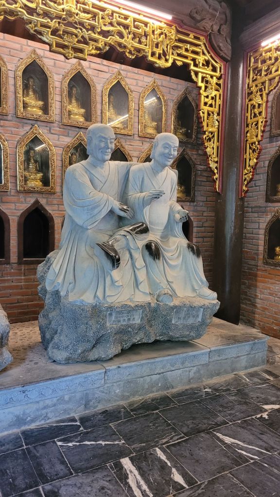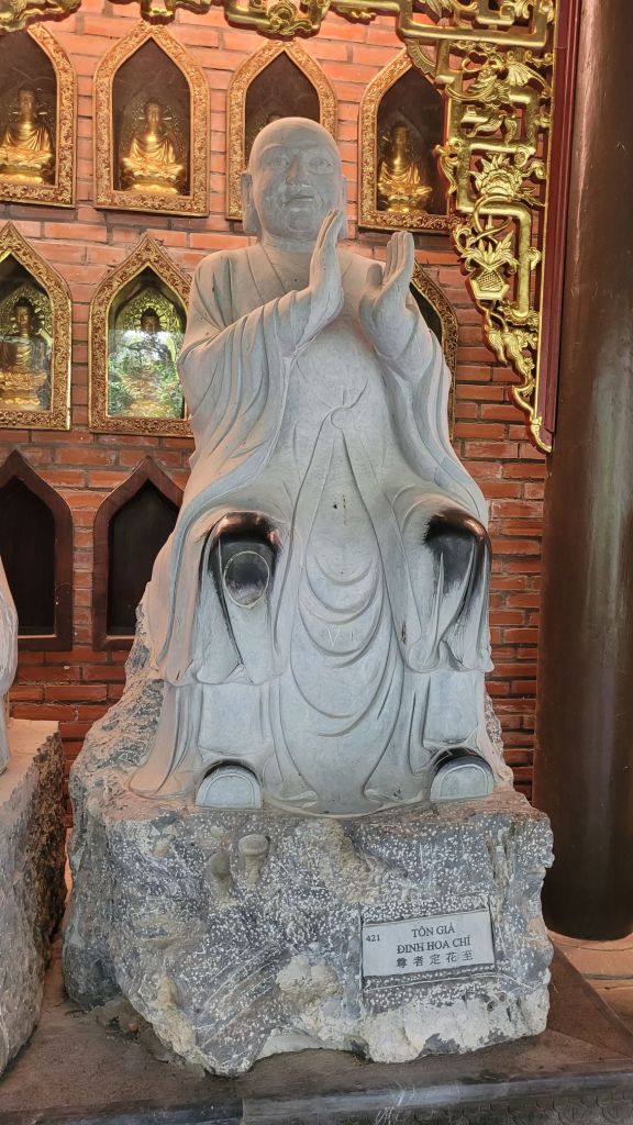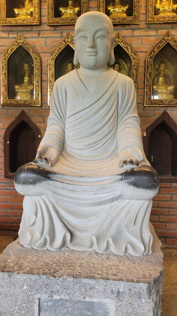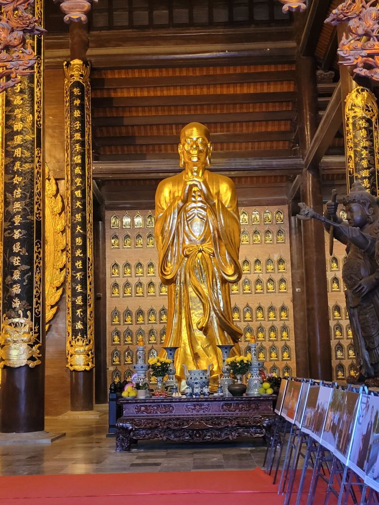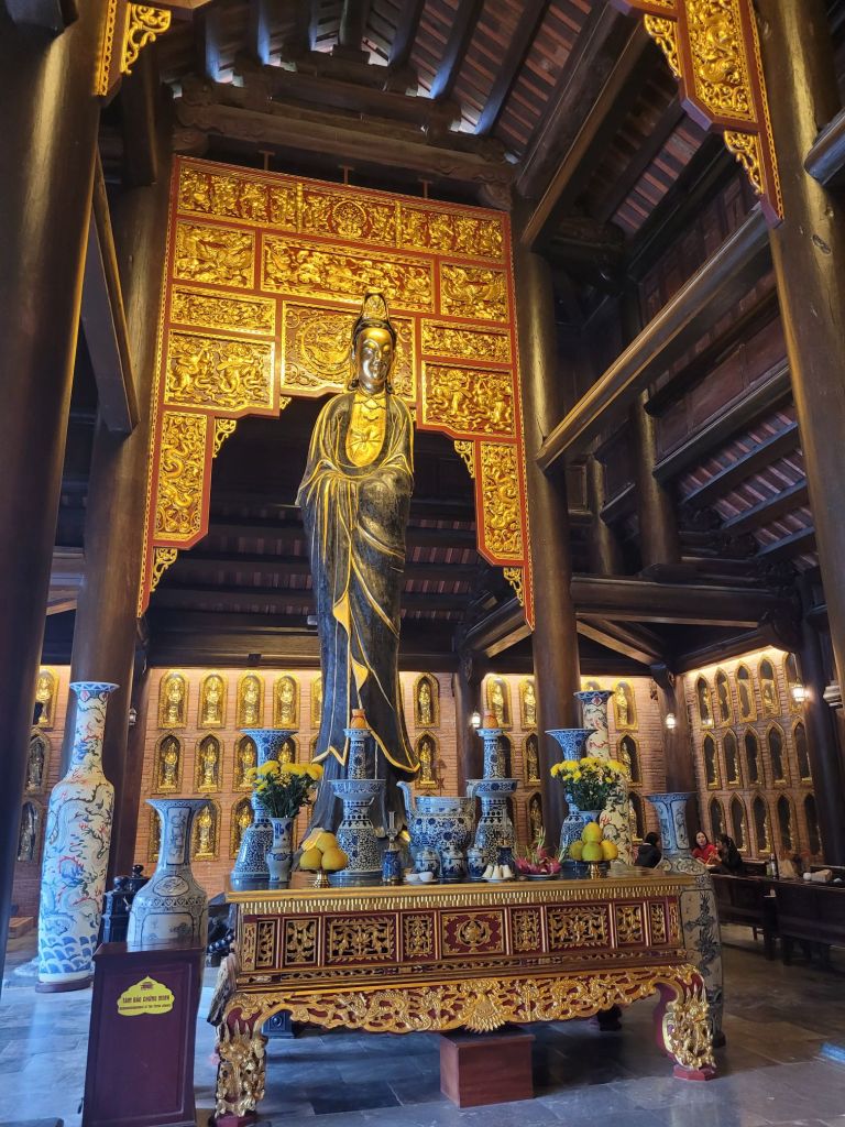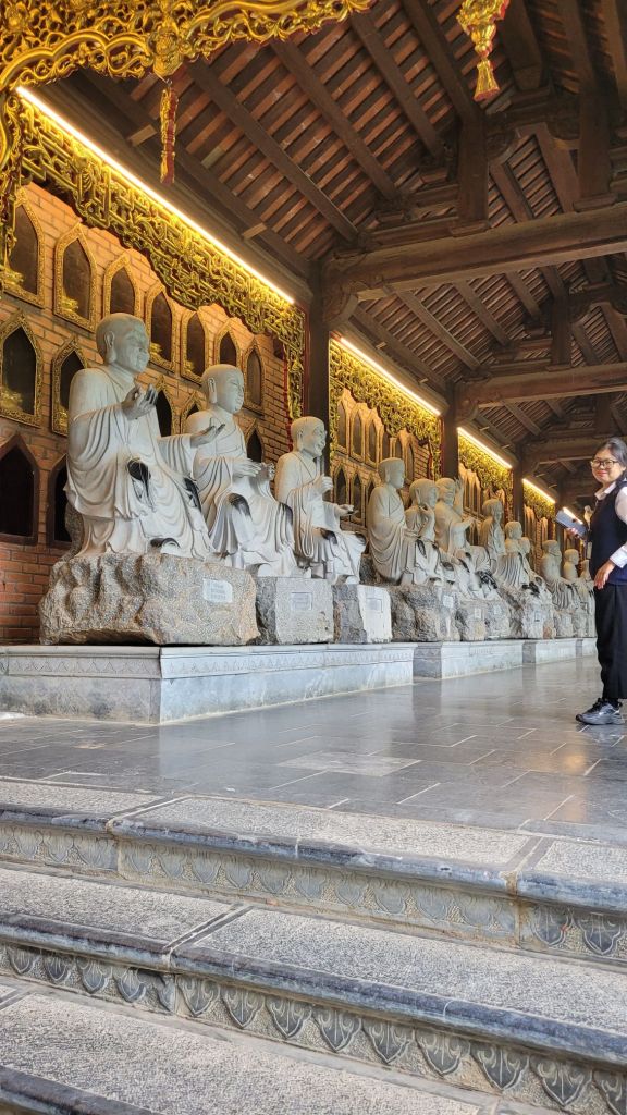 Upp 5.30. Livat i natt med. Men musiken är ok. Idag är det ”utpåturdag”. Köpt en tur till Nimh Binh. Blev hämtad 7.15. Bokat tur via hotellet med Heritage tour. Vi var en liten grupp, 11 personer. Av dem var vi bara 4 som hade valt att besöka pagodan. Familjen är från Sydkorea, detta är deras första resa utanför sitt land. Mycket trevliga. Den största buddistiska pagodan i Vietnam. 80 hektar stort. Fick veta att det är skillnad på pagoda och tempel här i Vietnam. Pagoda är alltid buddistiska. Tempel är inte knutna till någon särskild region. Det kan vara kristendom, hinduism, taoism mm. Tänker på det där templet jag besökt i Vietnam, som var knutet till taoismen, där man tillber olika. Mycket kitch, intressant och spännande.