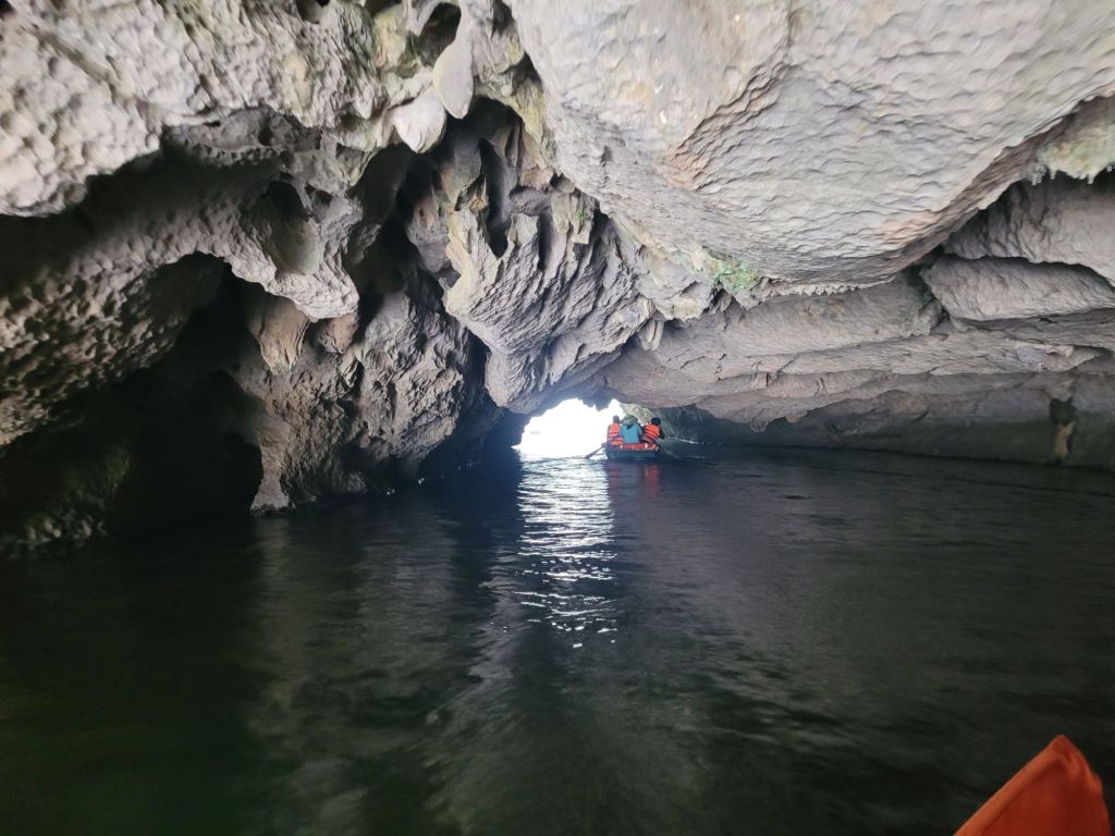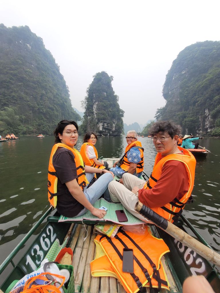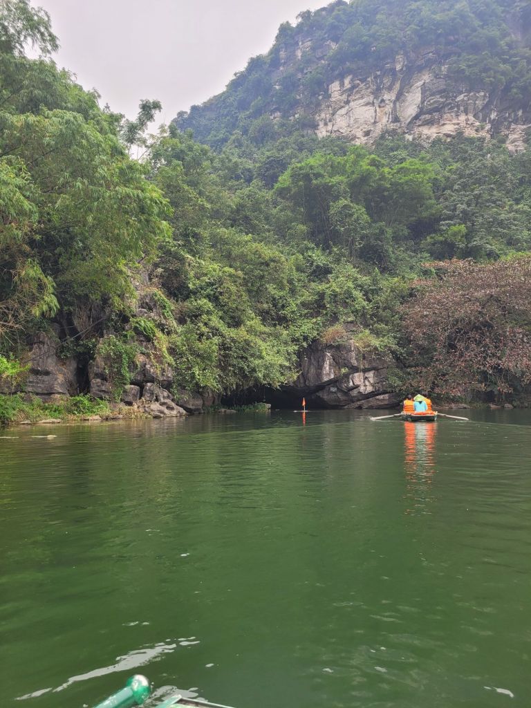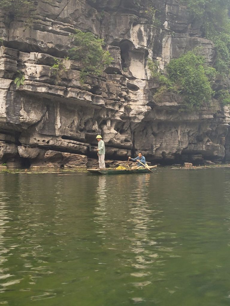 Efter mat och lite häng drog vi vidare med bussen, mot Trang an och flodtur genom grottor. Jag och familjen från Sydkorea samlades i en båt. Så vackert, åkte genom 5 grottor, olika längd på dem. Så häftig upplevelse. Färden tog ca 1,5 timme.
