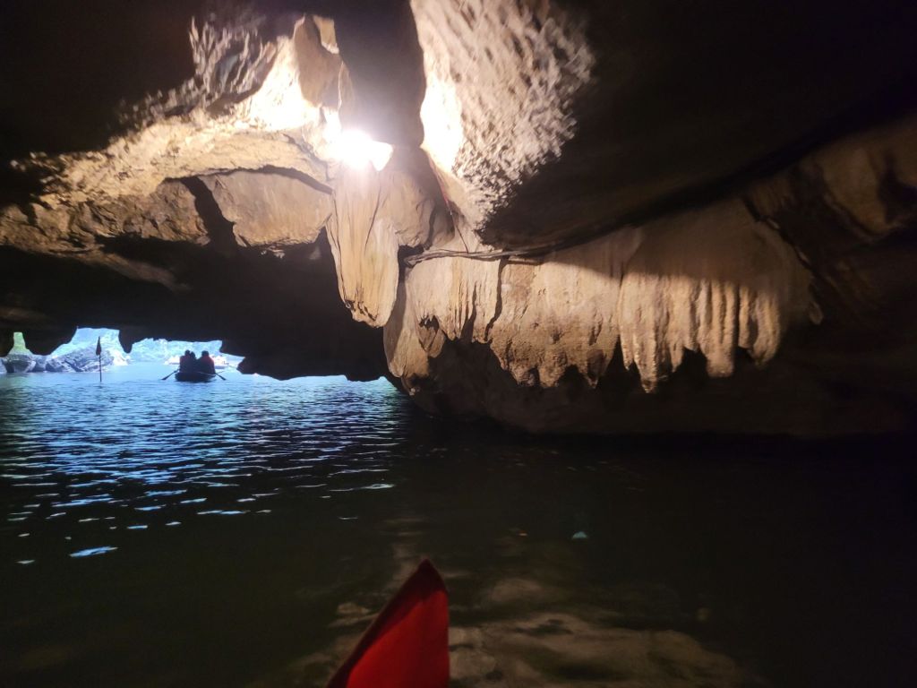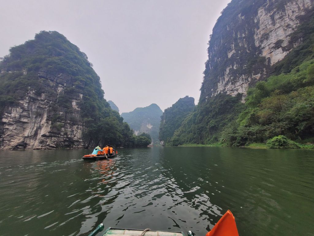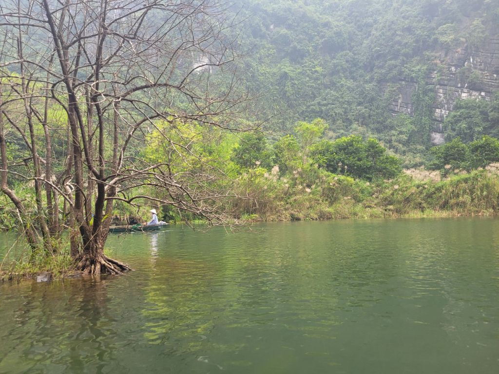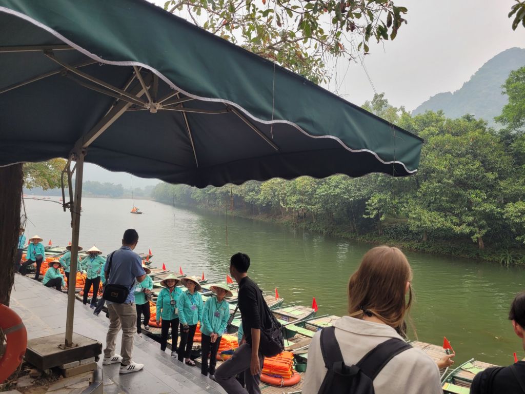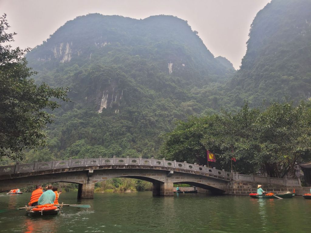 Efter mat och lite häng drog vi vidare med bussen, mot Trang an och flodtur genom grottor. Jag och familjen från Sydkorea samlades i en båt. Så vackert, åkte genom 5 grottor, olika längd på dem. Så häftig upplevelse. Färden tog ca 1,5 timme.