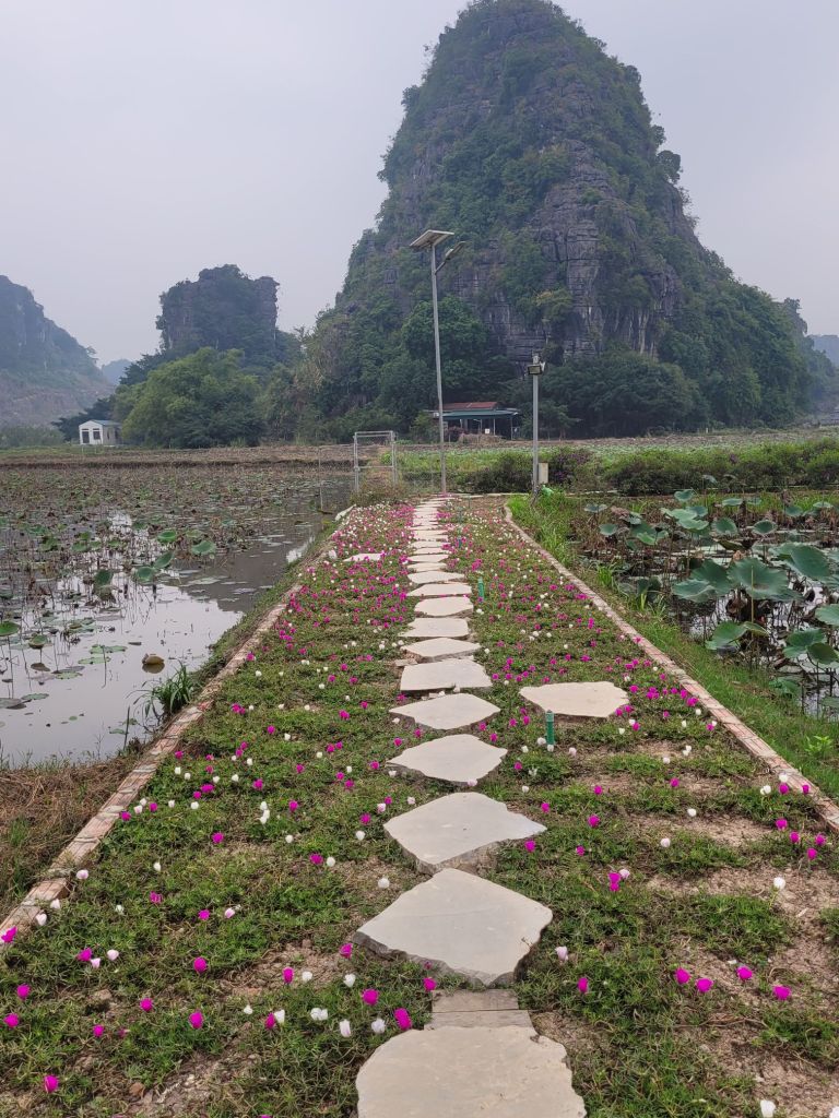 Bussen vidare mot Mua Cave, 500 trappsteg upp mot ”draken”, en staty på toppen. Jag hoppade det, pga att det regnade och sikten var dålig. Gick istället runt på fälten med Lotusblommor. Min favoritblomma, den står för så mycket. Lotusblomman som växer mot ljuset och hämtar sin näring från dy och träsk är en symbol för att visdom och utveckling. Lotusblomman är en symbol för renhet och andlig kraft i både den buddhistiska och hinduistiska religionen samt för faraonernas kultur i det antika Egypten.
